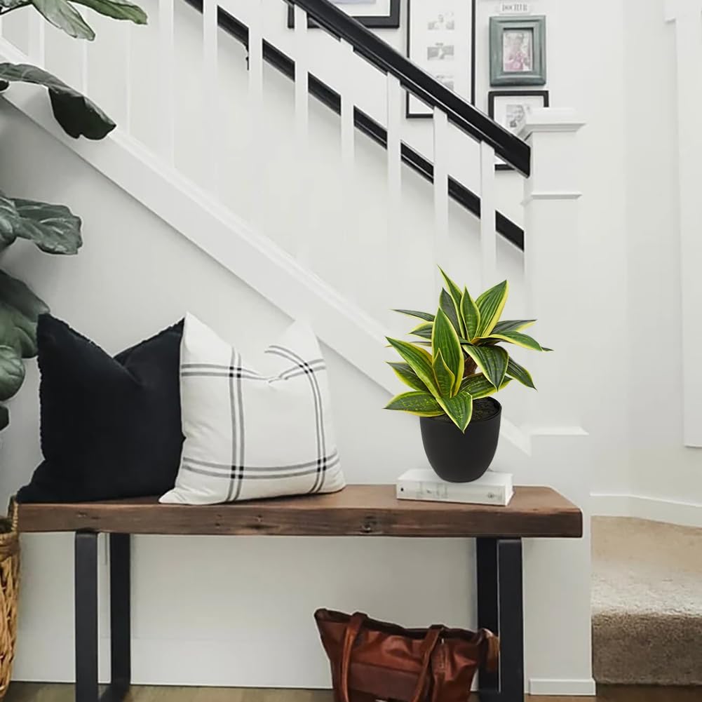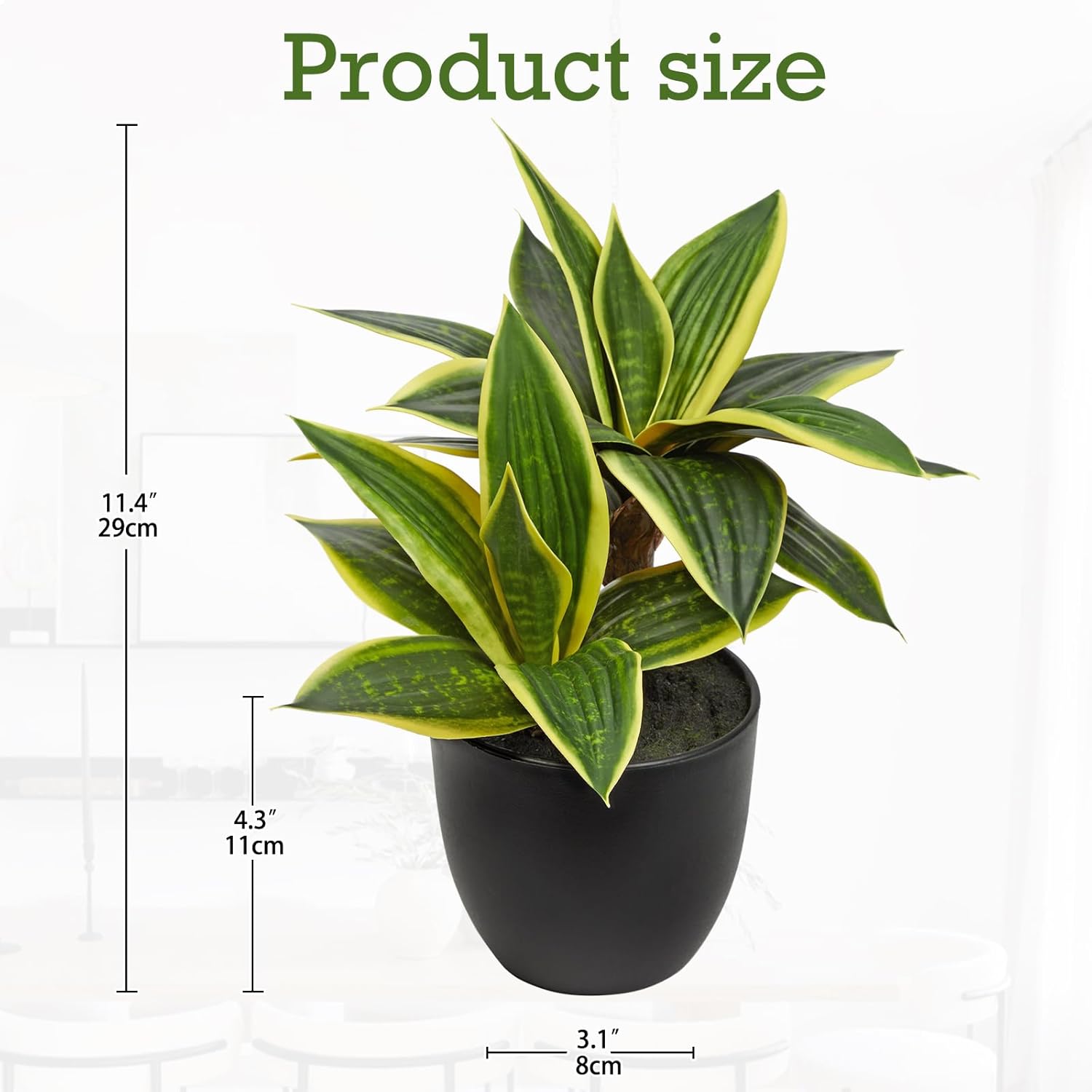 - 【Size】1 set 11.4″ tall faux sansevieria with black pot (3.1"Dia.×4.3" H.), 20 lifelike leaves.The leaves are thick and feel like the real snake plants.