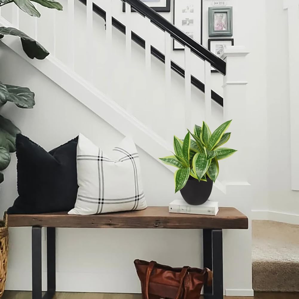 - 【Size】1 set 11.4″ tall faux sansevieria with black pot (3.1"Dia.×4.3" H.), 20 lifelike leaves.The leaves are thick and feel like the real snake plants.