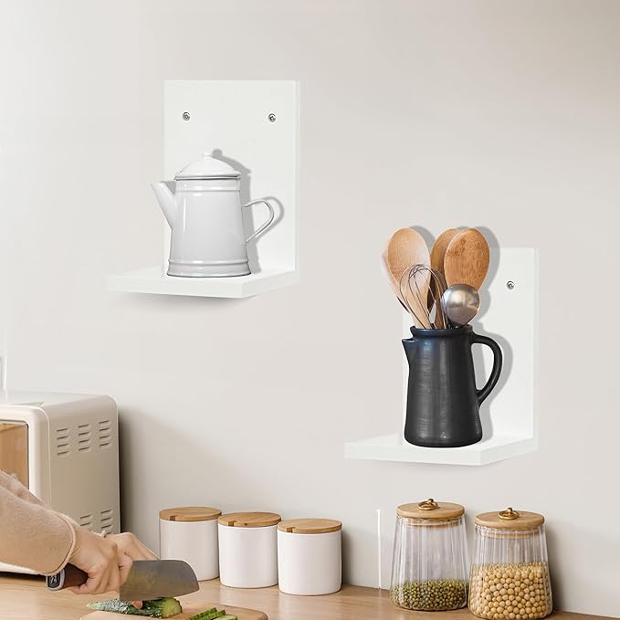 - Widely Used: This small wall shelves can be used in your living room,bedroom,kitchen,bathroom to display potted plants,ornament,candles,photo frames,trophy,etc.Minimalist design can maximize wall space,transfer your items from countertops to empty wall