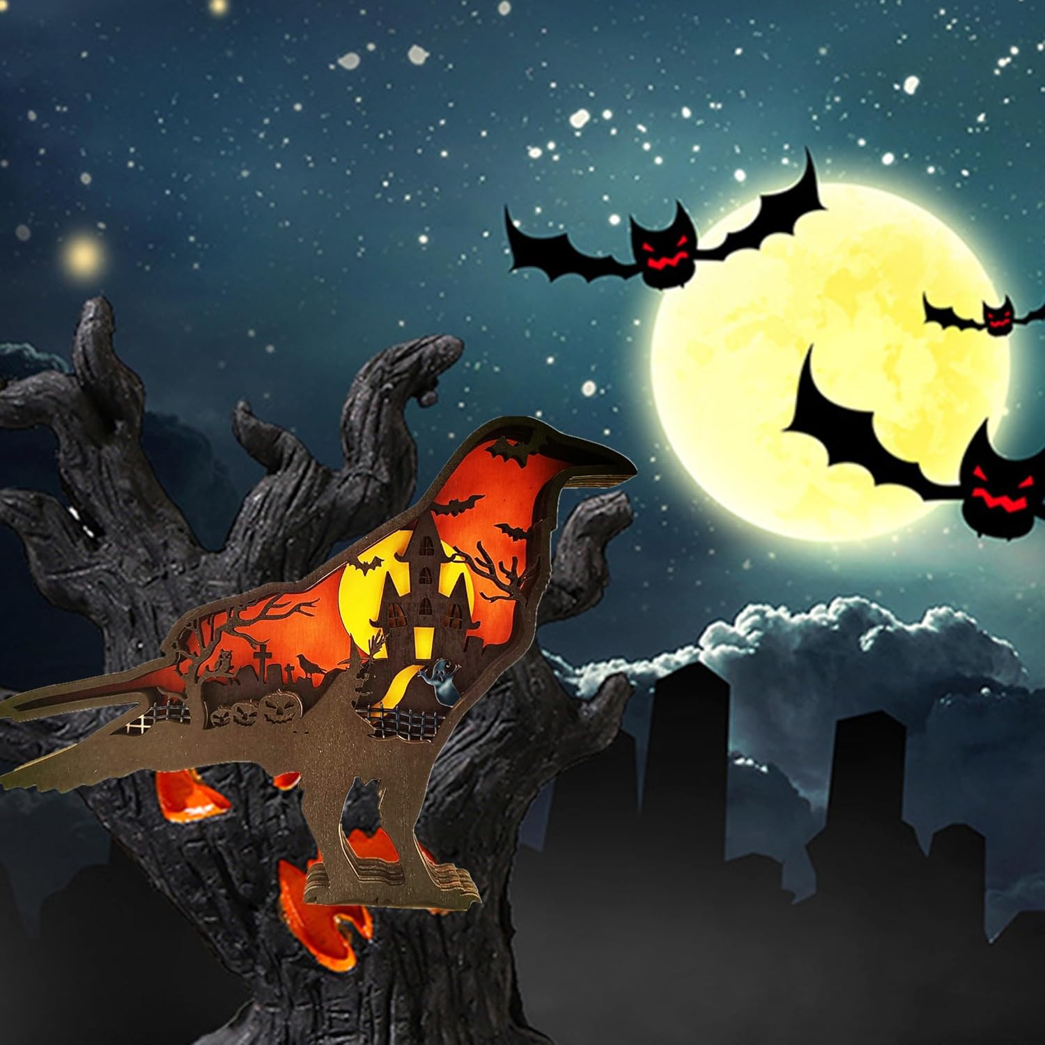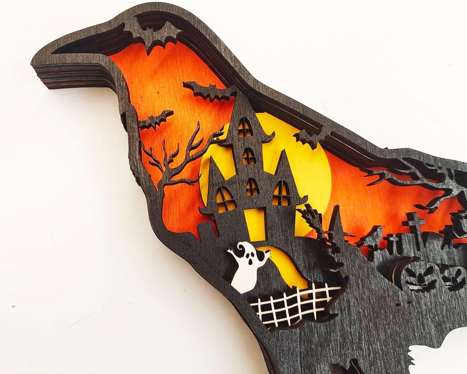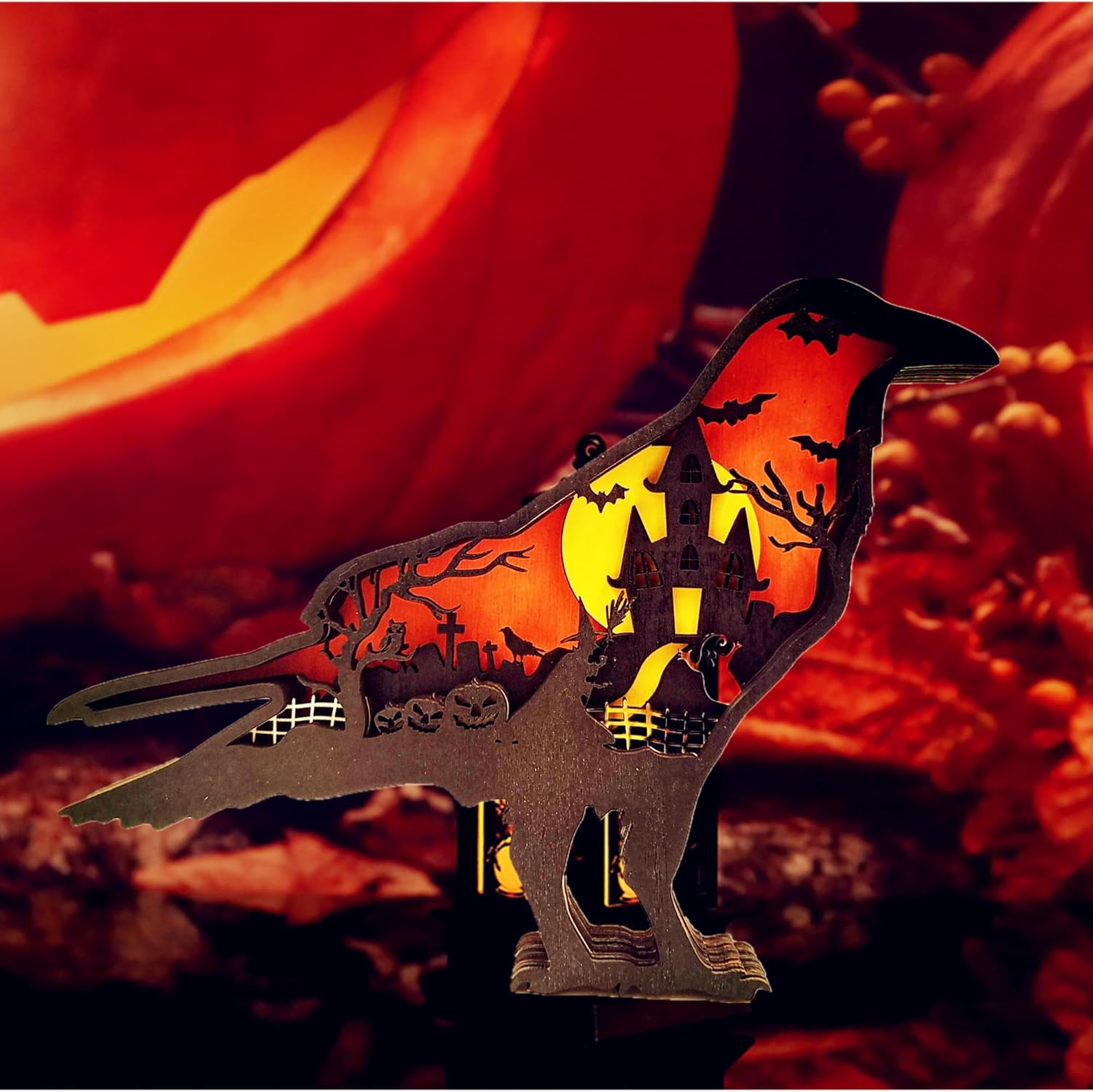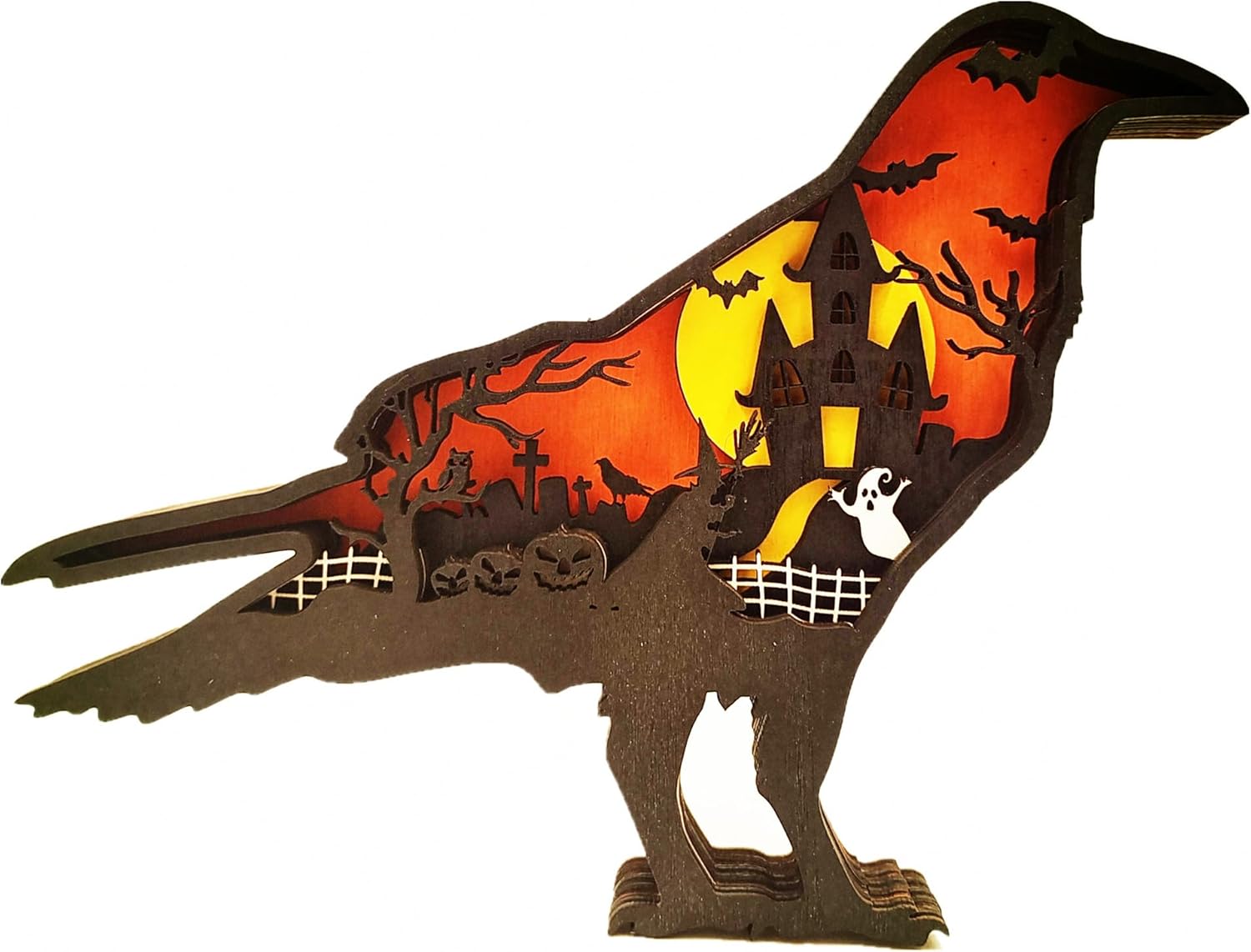 Forest Animal Desk Art Decor Wooden Farmhouse Table Decoration, Cabin Decor, Nursery Decor Mountain Decor for Bedroom Living Room (Crow)