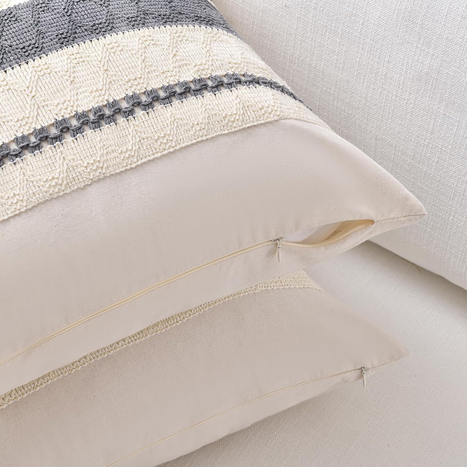 Fancy Homi Set of 2 Neutral Grey Farmhouse Decorative Throw Pillow Covers 22x22 Inch for Couch Bed Chair Indoors, Vintage Country Rustic Retro Room Decor, Soft Thick Cotton Handmade Woven Cushion Case