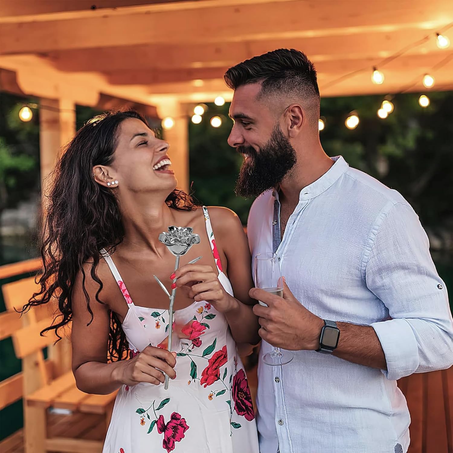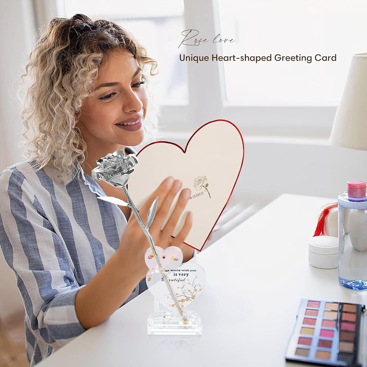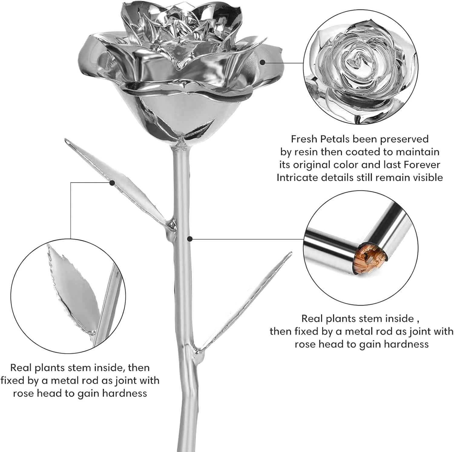 Gold Dipped Infinity Rose Last Forever Flower Decor, Birthday Gift for Women in Her Birthday Mothers Day, Resin Preserved Rose | Anniversary Present for Mom (Silver)