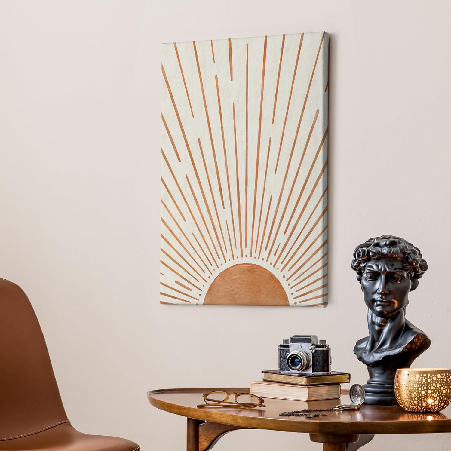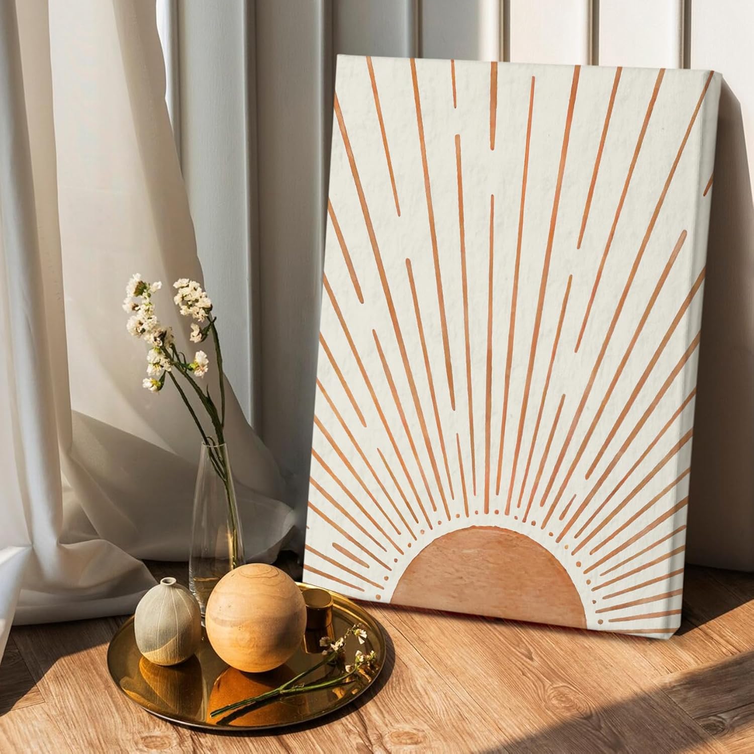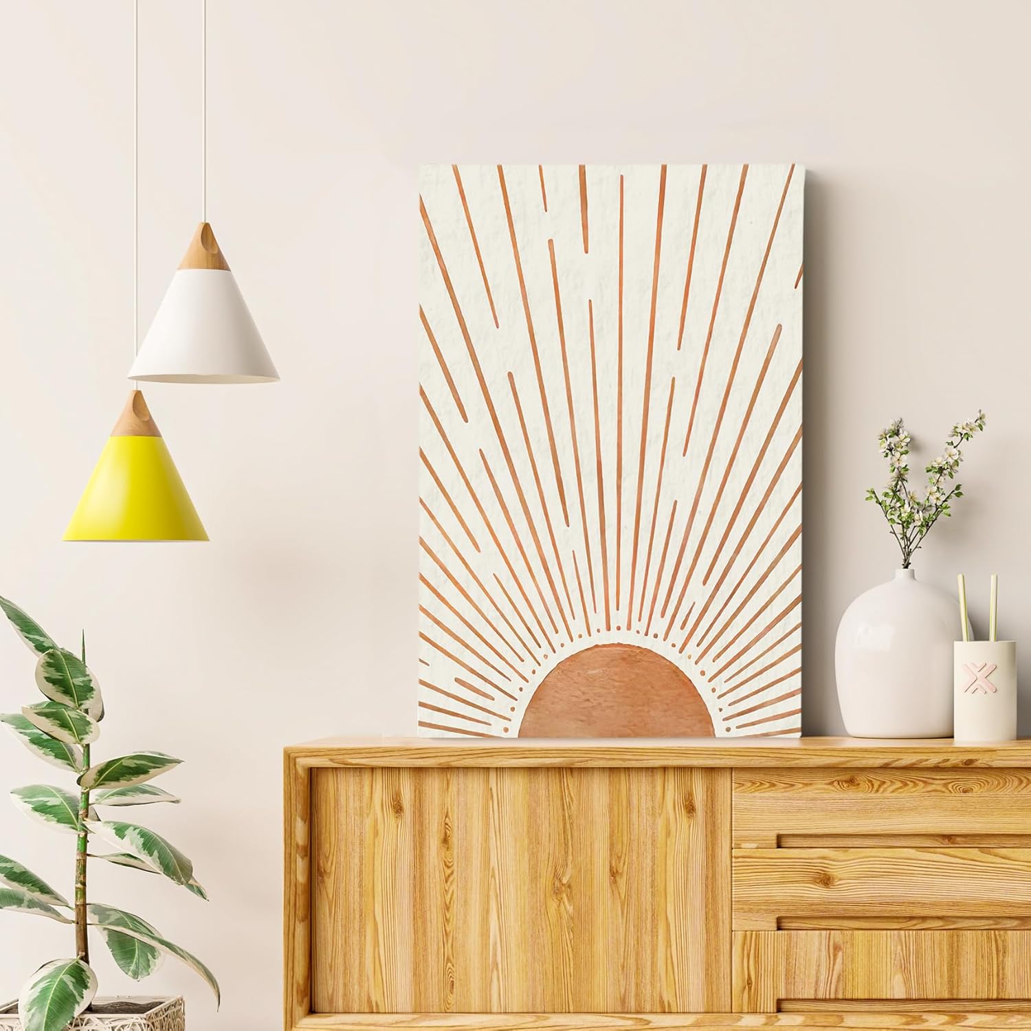 HIWX Vintage Abstract Boho Sun Framed Canvas Painting Wall Art Decor, Bohemia Boho Sunrise Sunshine Wall Art Artwork Home Decoration For Living Room Yoga Bedroom Bathroom 16x24 Inch