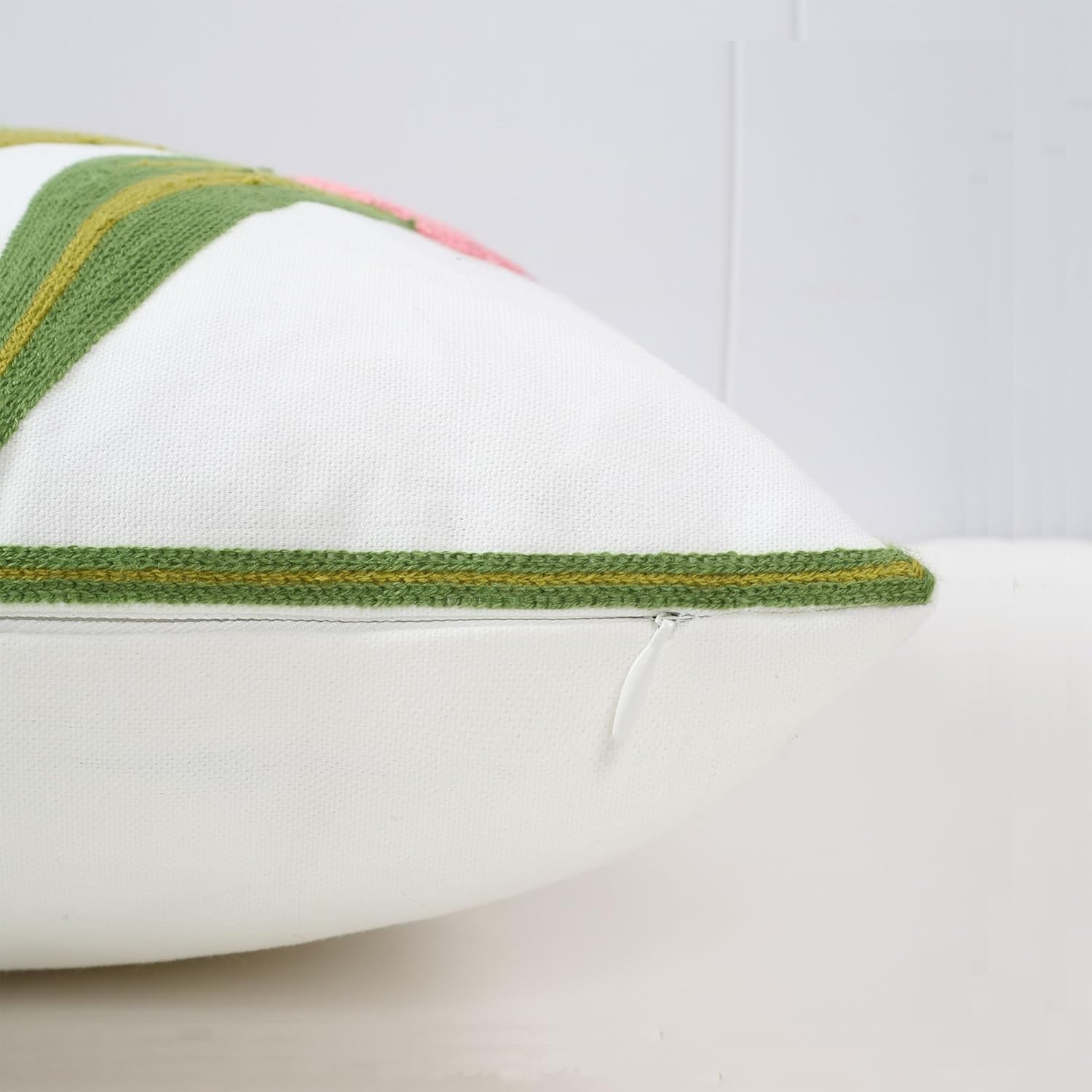 - Size and Package: The throw pillow cover measuring 18x18 inches. 1 piece only, no insert. Tulip flower embroidered on the front side only, back side is white cotton canvas. Manual production will inevitably occur a little deviation, please allow 1-2cm inaccuracy. Invisible zipper at side allows easy insert or take out of the filling.