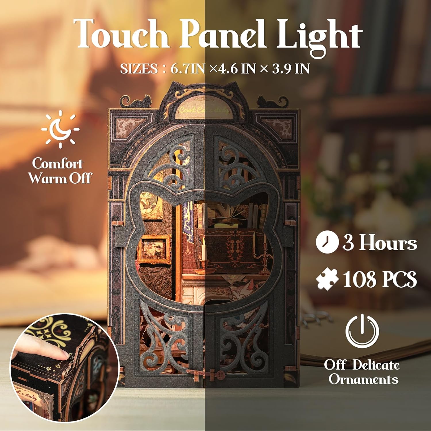 Cutefun Book Nook Kit - DIY Miniature House Kit for Bookshelf Decor, Book Nook Kits for Adults & Beginners, 3D Wooden Puzzle Dollhouse, Ideal Gift for Family and Friends (Count Cat's Study)