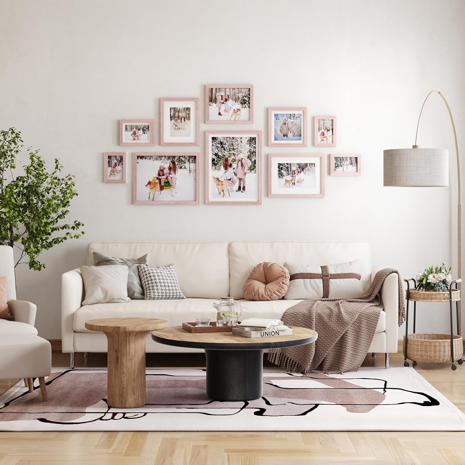 Egofine 8x10 Picture Frames Set of 4, Made of Solid Wood Covered by Plexiglass 4x6 and 5x7 with Mat or 8x10 without Mat, for Table Top Display and Wall Mounting Photo Frame Peach Pink
