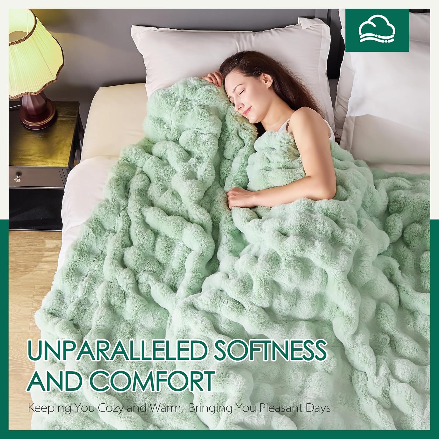 • LUXURIOUS COZY FAUX RABBIT FUR FABRIC: This bubble blanket is crafted from 780GSM plush faux rabbit fur fabric for warmth and comfort, and 220GSM crystal velvet fabric lining for silky softness. The furry faux rabbit fur throw blanekt feel as soft as clouds and gently wrap you like a warm embrace, giving you a comfortable double-sided experience, making you feel cozy all winter long.