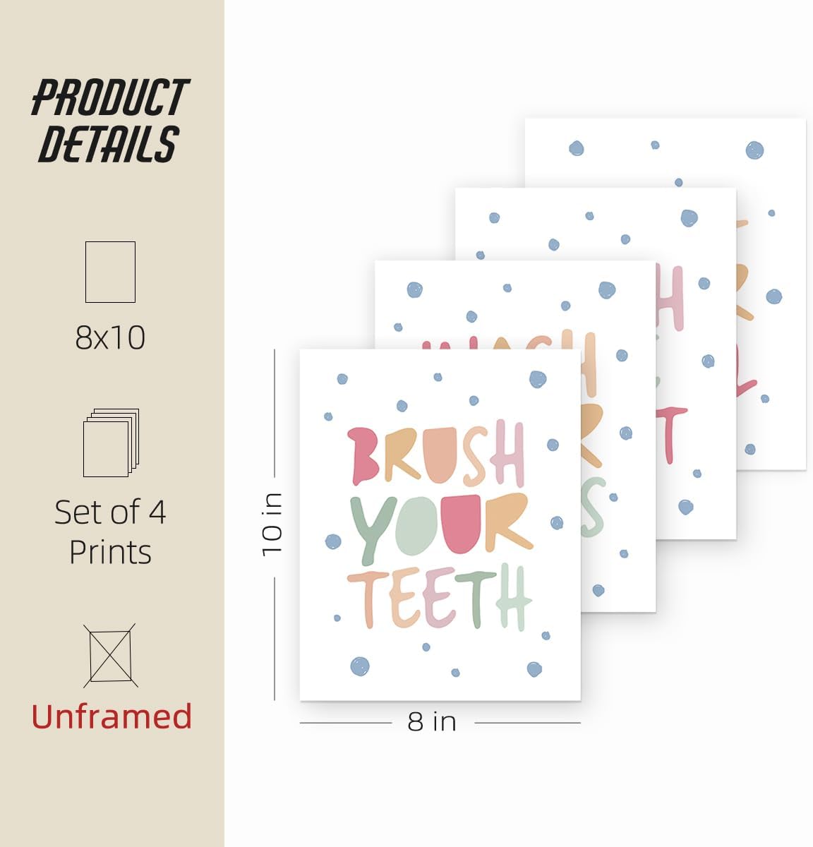 ETVISO Kids Bathroom Decor Set of 4, Kids Bathroom Wall Decoration Prints, Wash Your Hands Sign Decoration, 8x10 (Unframed)