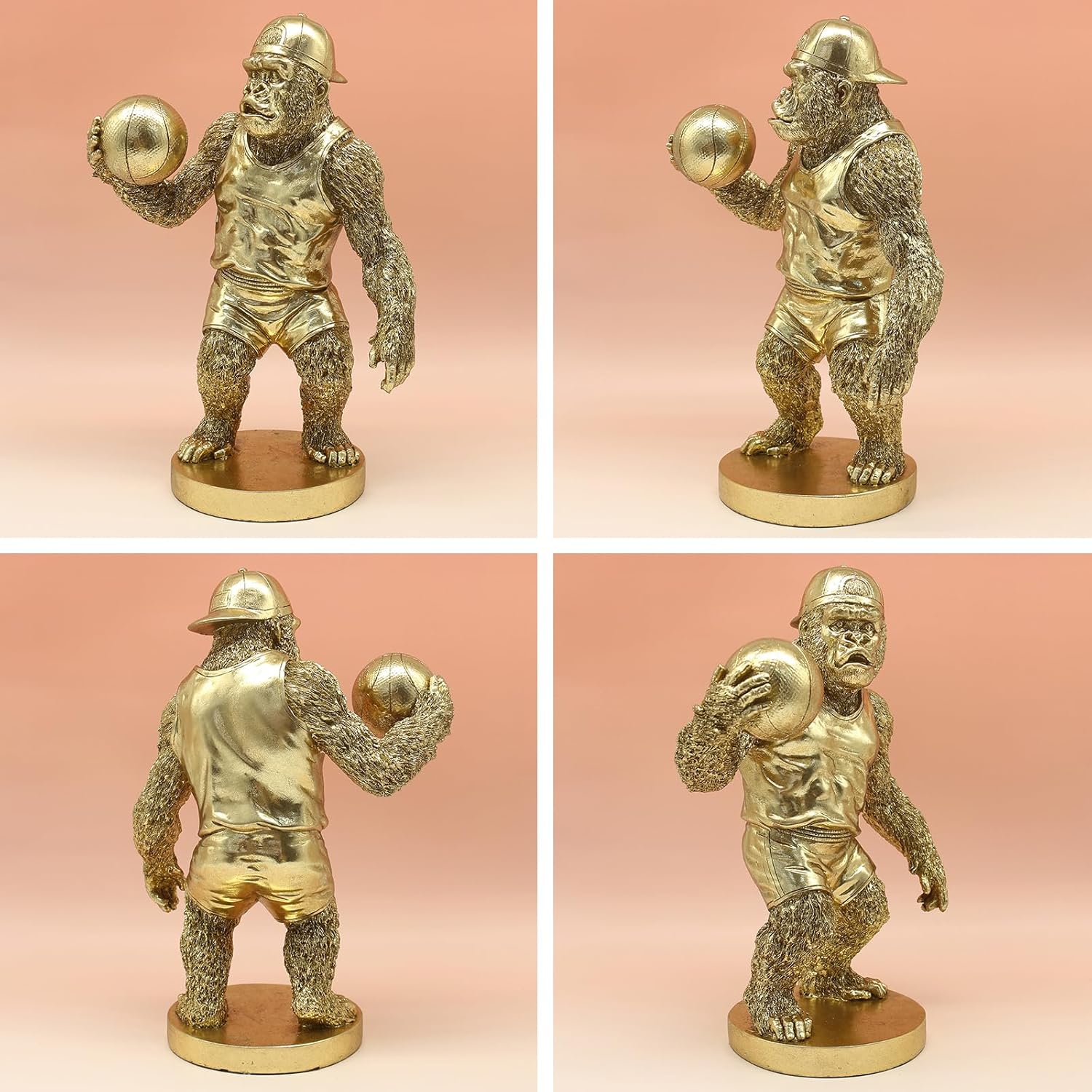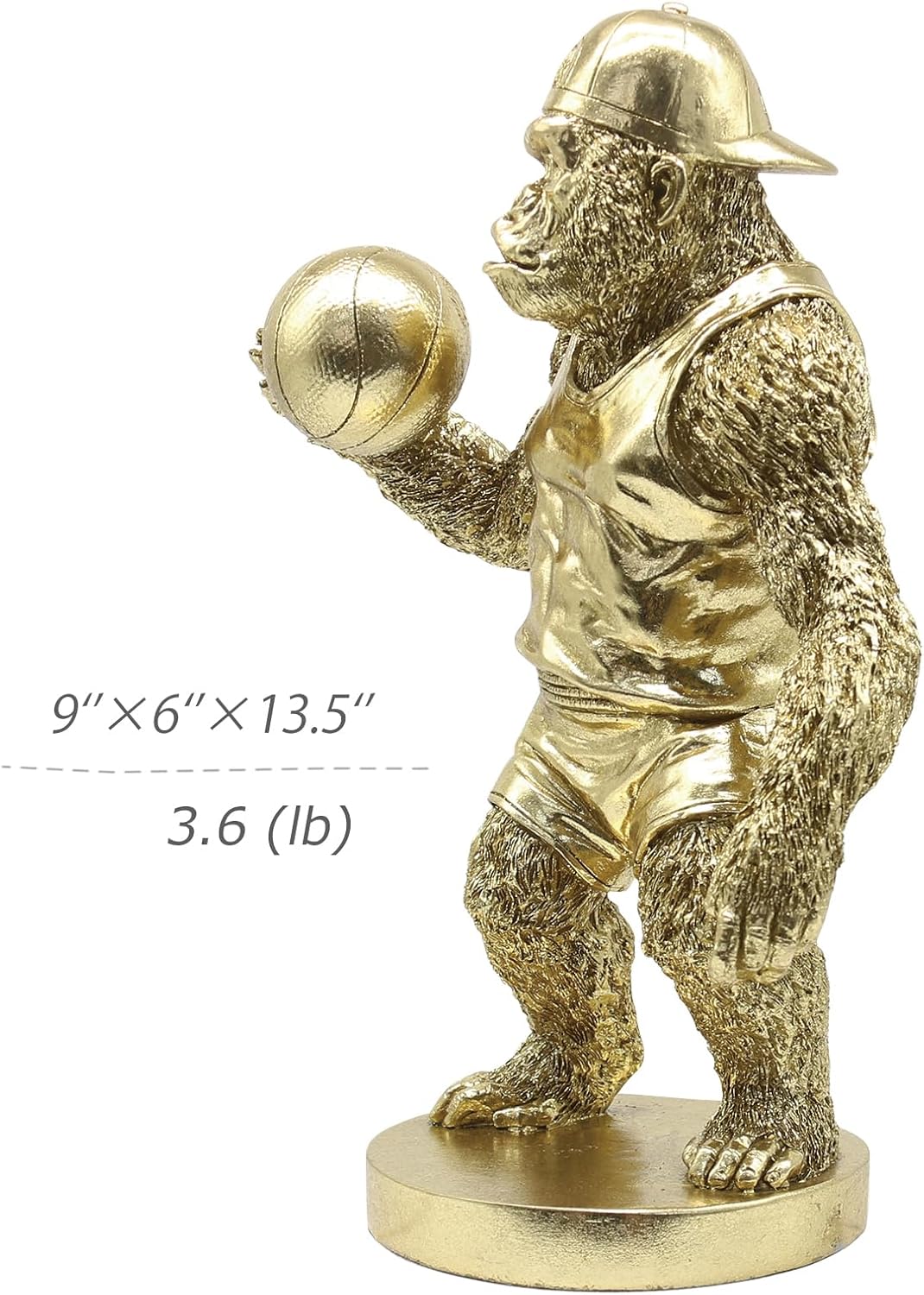 Lukitas Gorilla Playing Basketball Figurine Decor, Kingkong Statue and Sculpture Decor, Creative Decoration for Living Room Office, Golden, Resin 13.5''