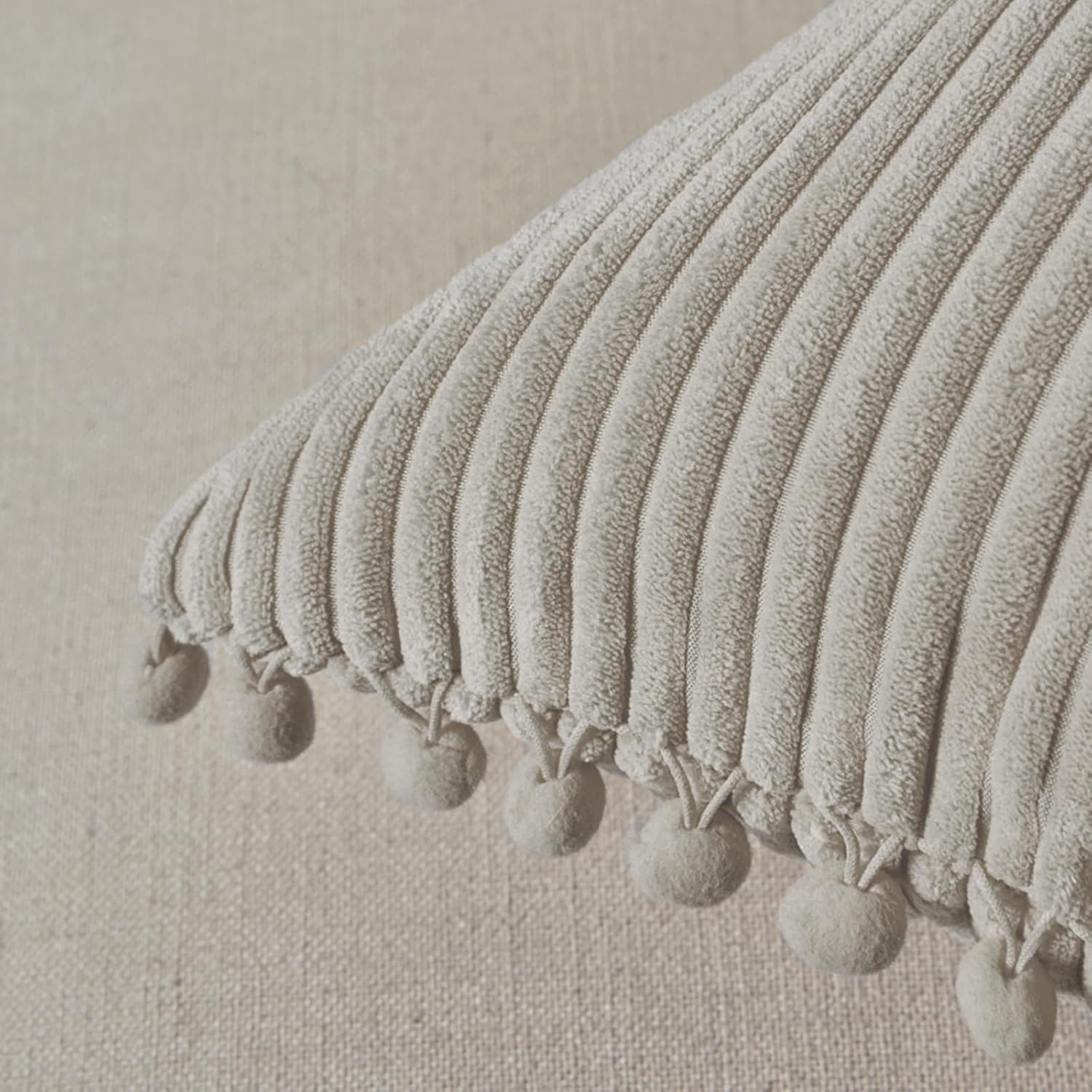 Fancy Homi 2 Packs Neutral Taupe Decorative Throw Pillow Covers 16x16 Inch with Pom-poms for Couch Bed Sofa, Aesthetic Modern Organic Farmhouse Boho Home Decor, Soft Corduroy Cute Accent Cushion Case