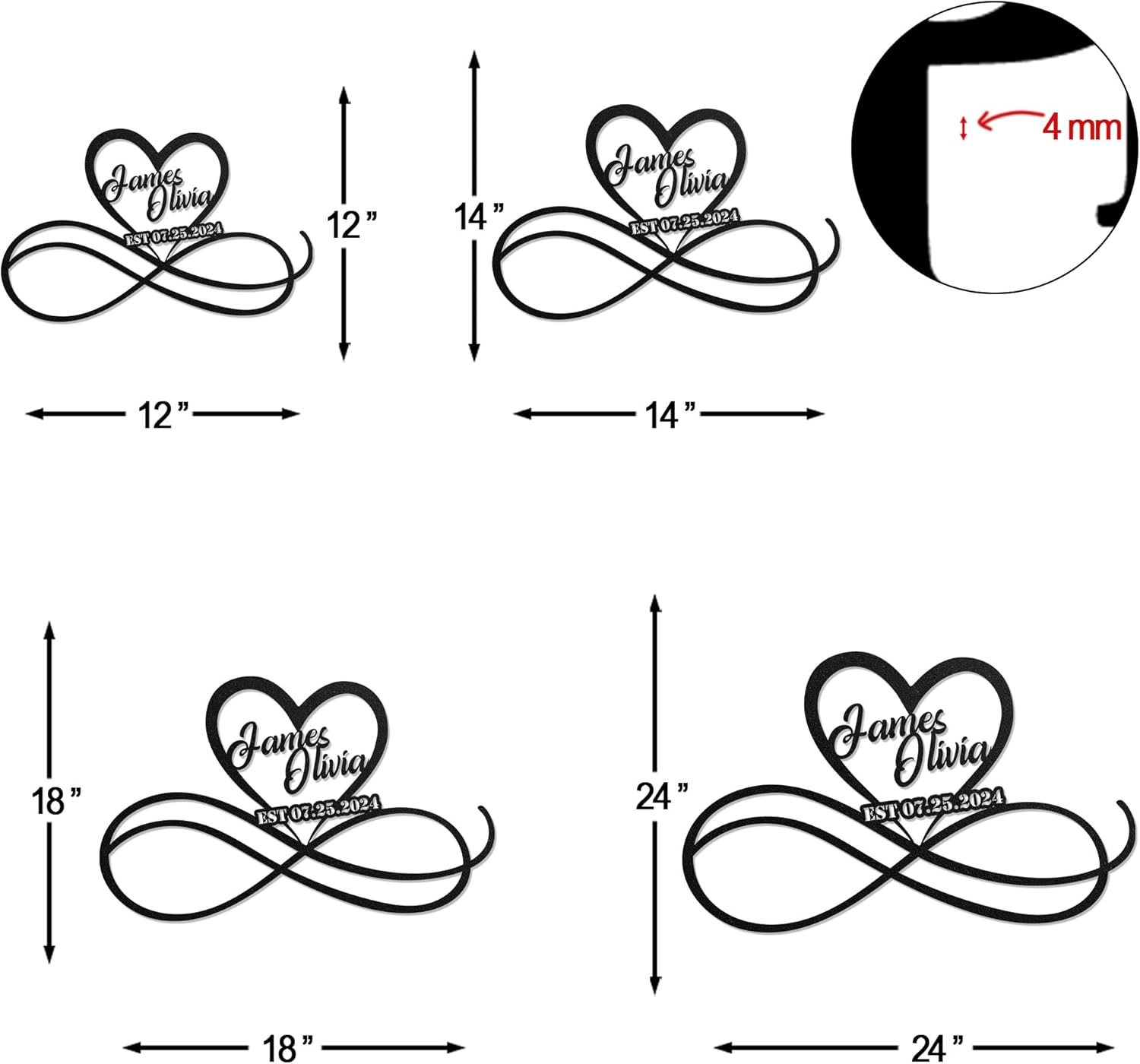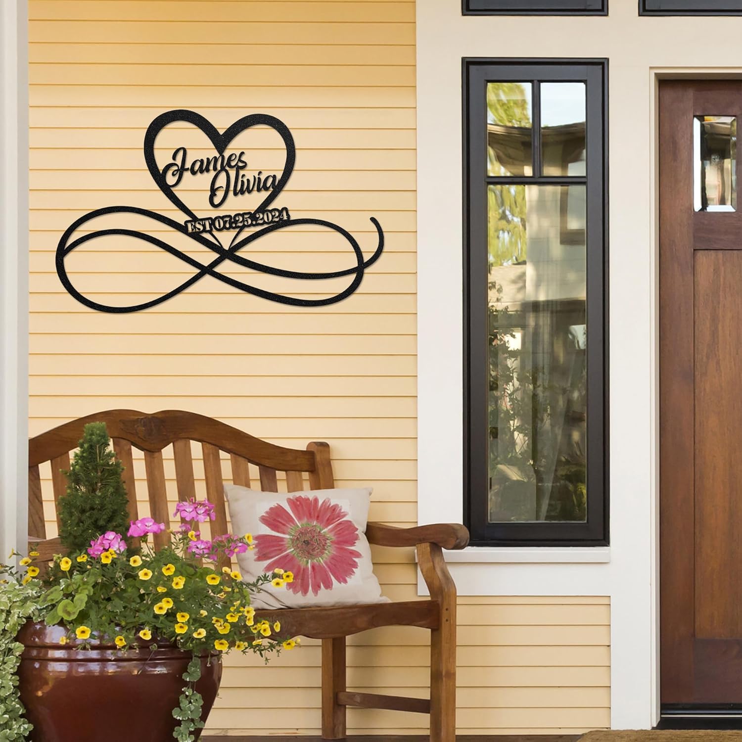 LULLBABYMALL Personalized Love Metal Sign - Customized Names and Date Wall Art, Infinity Metal Signs for New Home, Wedding, Couple, Christmas