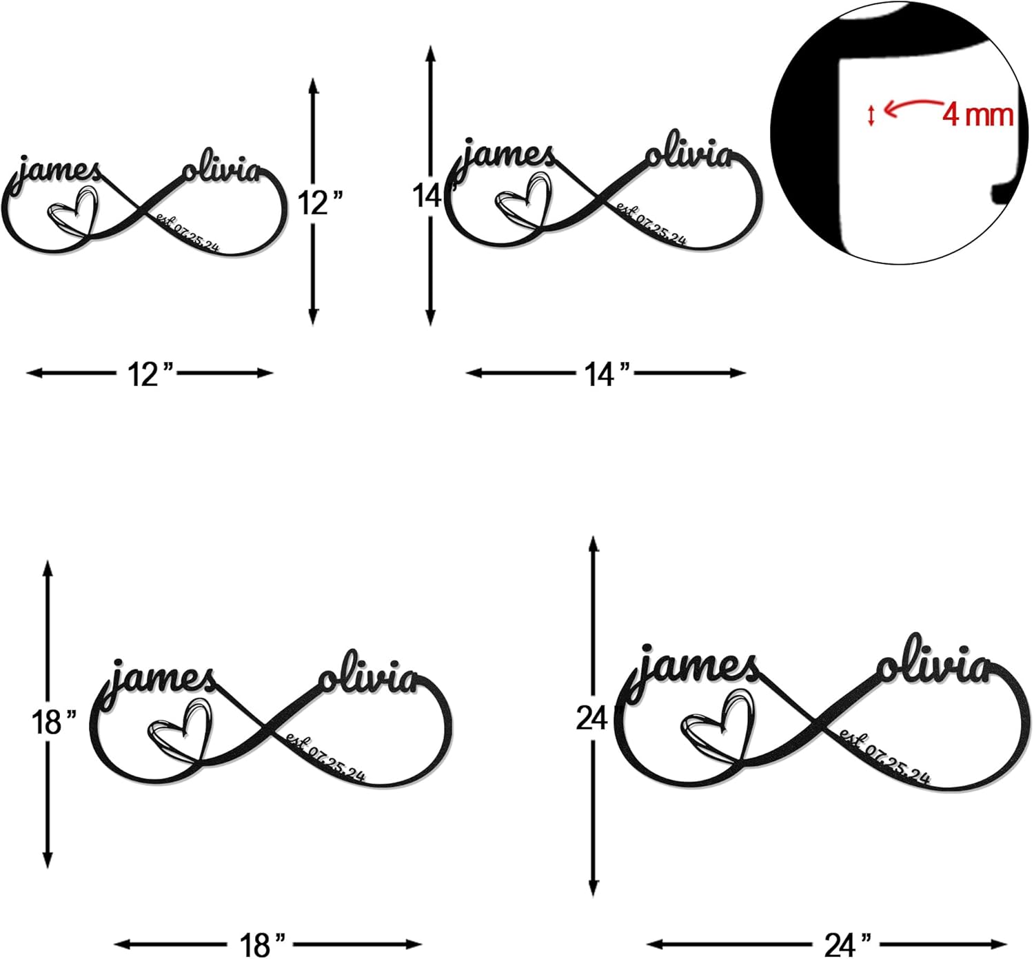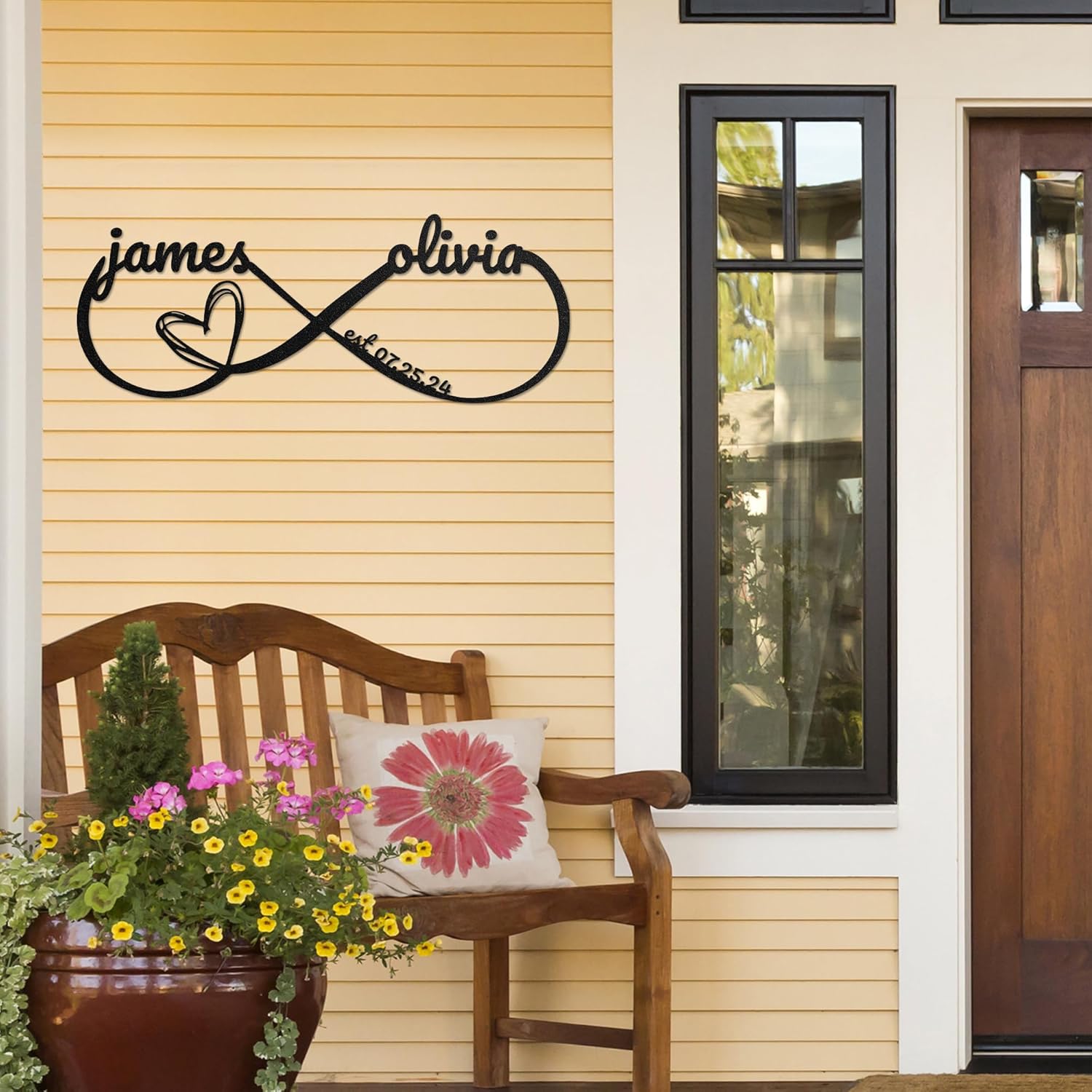 LULLBABYMALL Personalized Love Metal Sign - Customized Names and Date Wall Art, Infinity Metal Signs for New Home, Wedding, Couple, Christmas
