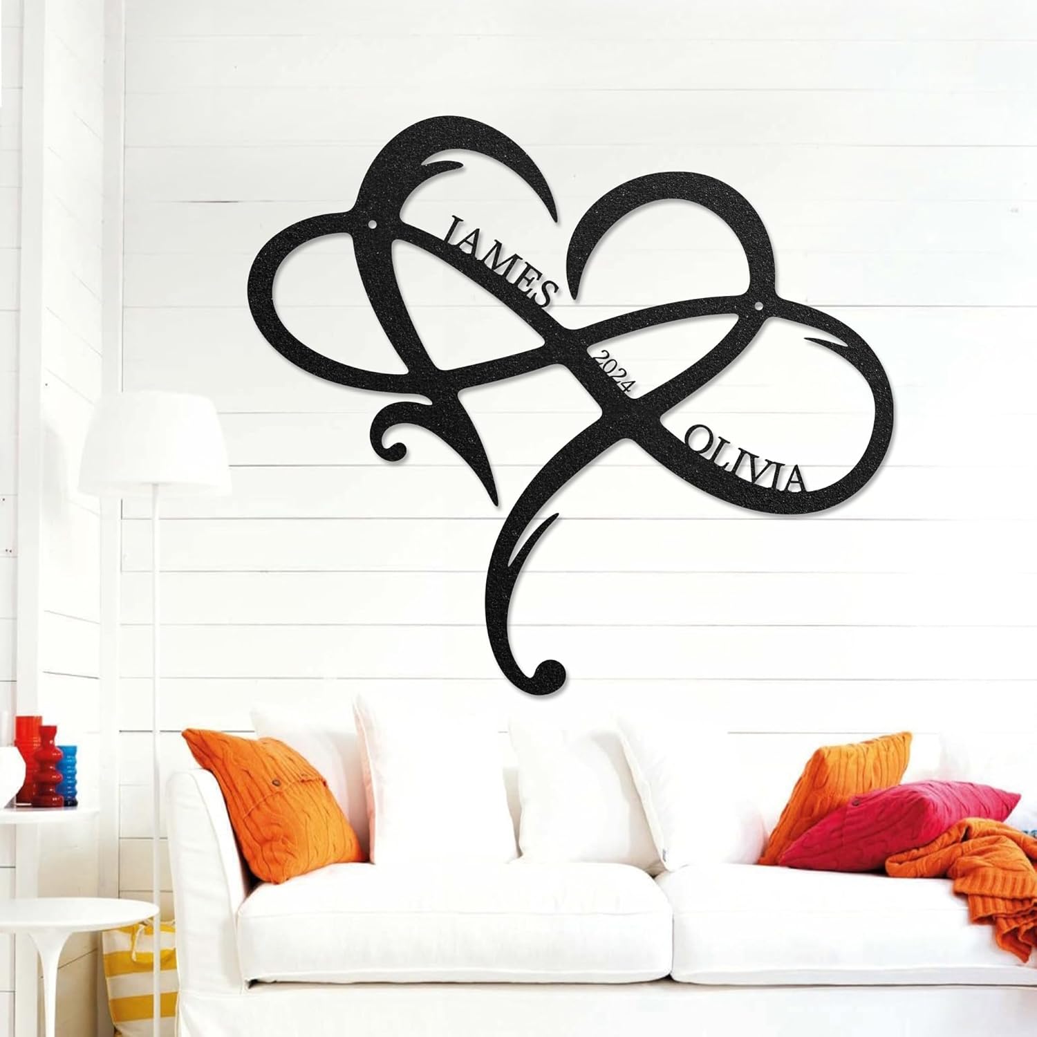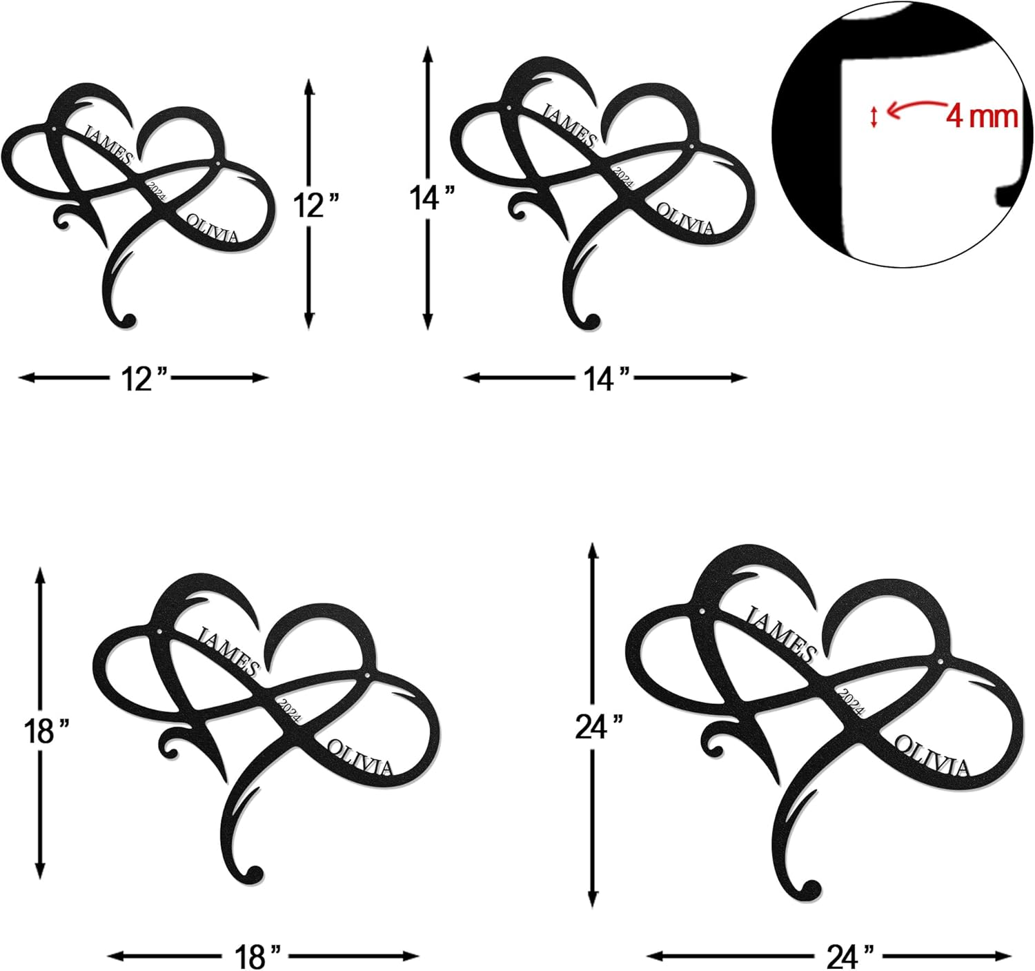 LULLBABYMALL Personalized Love Metal Sign - Customized Names and Date Wall Art, Infinity Metal Signs for New Home, Wedding, Couple, Christmas