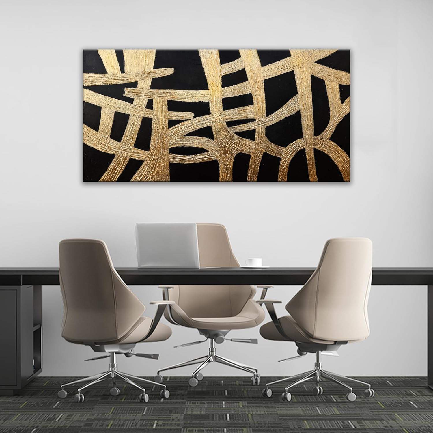 Dimpaga Abstract Canvans Wall Art Paintings Modern Wall art Decor Black And Gold Lines Texture Artwork for Walls Minimalist Wall Art Living Room Decor For Room Bedroom Office Wall Decor 20x40 Inch