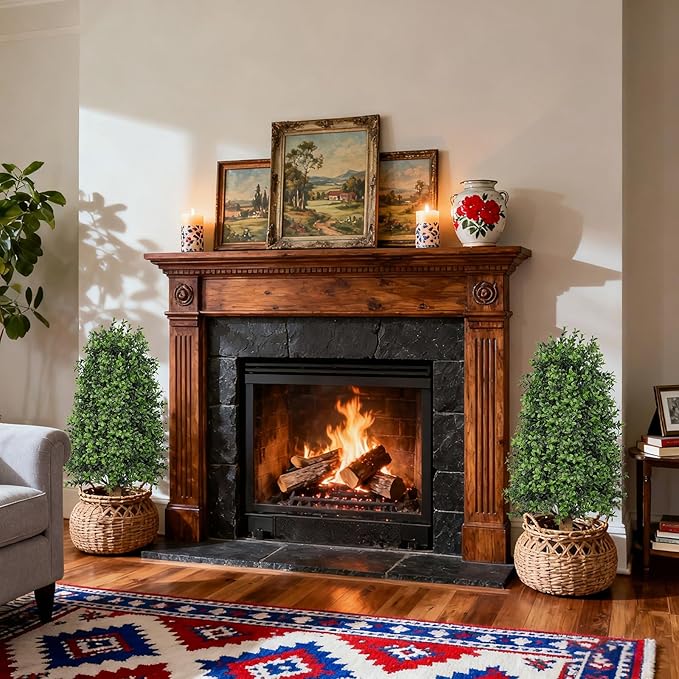 - 🌳【Lifelike Appearance】Every leaf on this boxwood tree is meticulously crafted to replicate the look and feel of real boxwood leaves, featuring a natural shape, texture, and varying shades of green and has a full, bushy look. Unlike stiff, plastic alternatives, the leaves of this boxwood topiary are soft, flexible, and feel like natural foliage, adding to its overall lifelike effect, providing the perfect blend of nature and design.