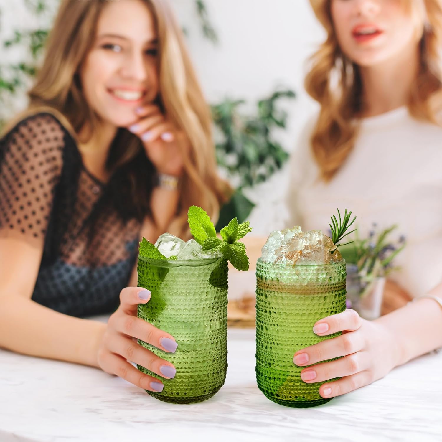 - QUALITY GLASS: Green drinking glasses are made of high quality lead-free thick glass, passed several gravity tests, BPA-free, durable, unbreakable and can be used repeatedly for a long time!