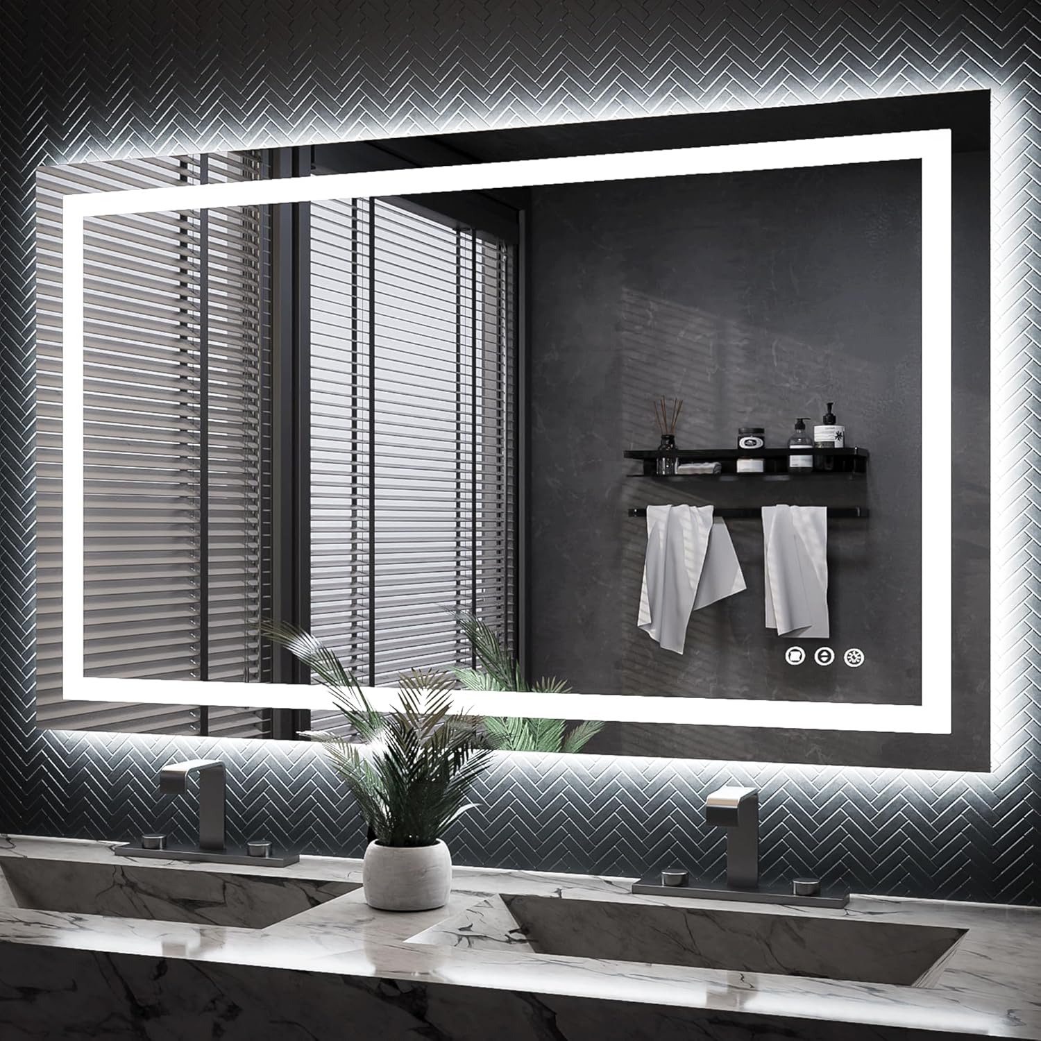 ISKM 50'' x 30'' LED Mirror for Bathroom Lighted Vanity Mirror for Wall Front Lights + Backlit LED Bathroom Mirror Anti-Fog Tempered Glass ETL Listed