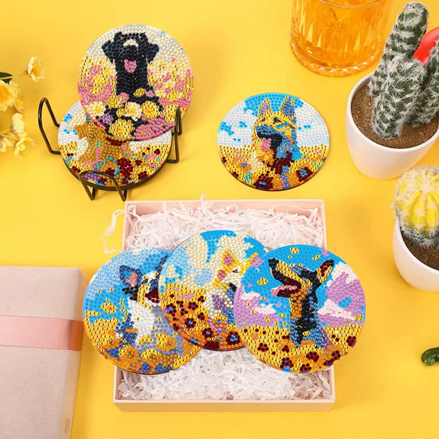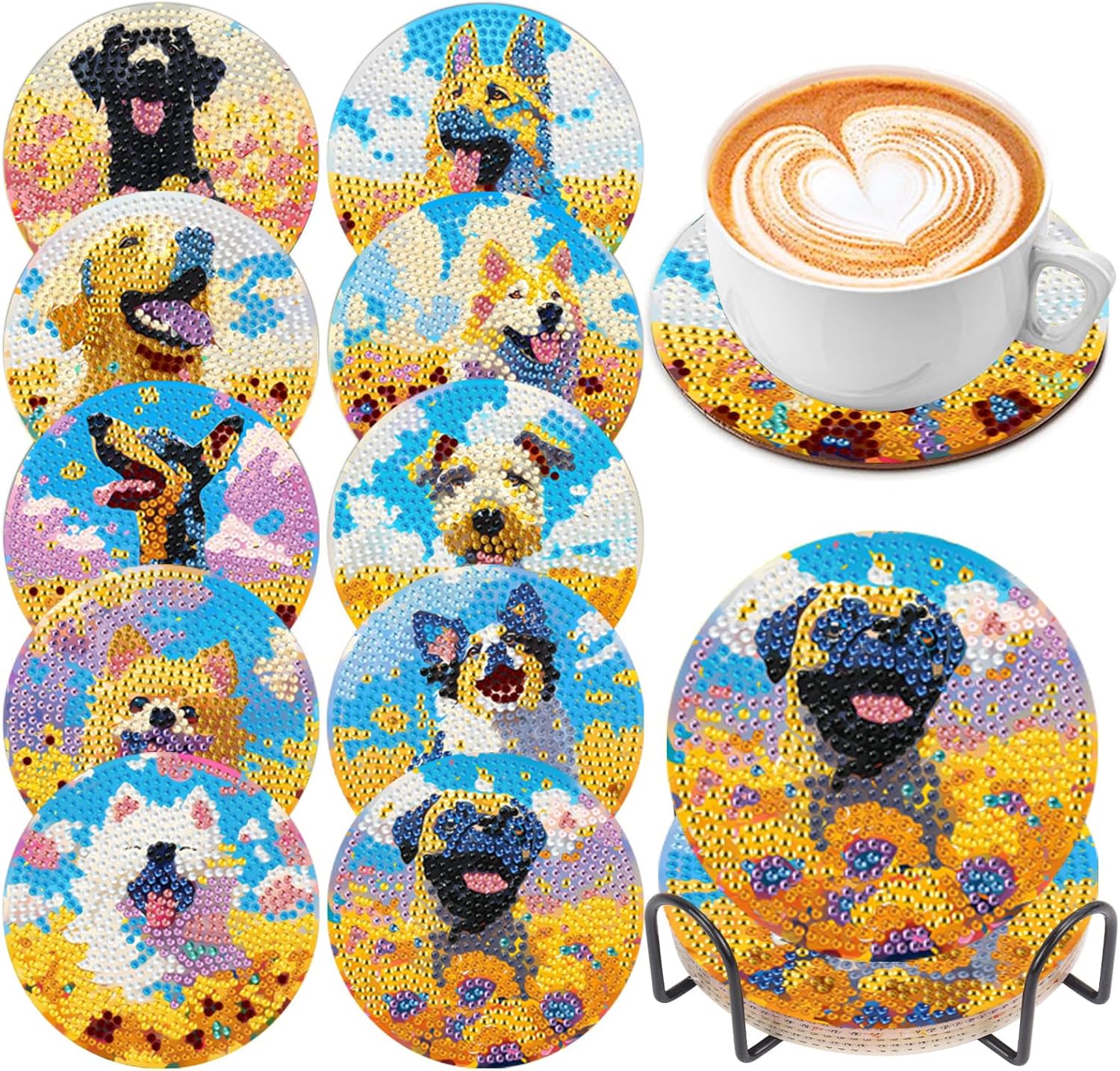 EWJRNSF 10 PCS Diamond Art Coasters Kit, Small Diamond Painting Coasters, Fall Diamond Art Kits for Adults Beginners, Arts and Crafts Supplies Item Sets with Holder Dog