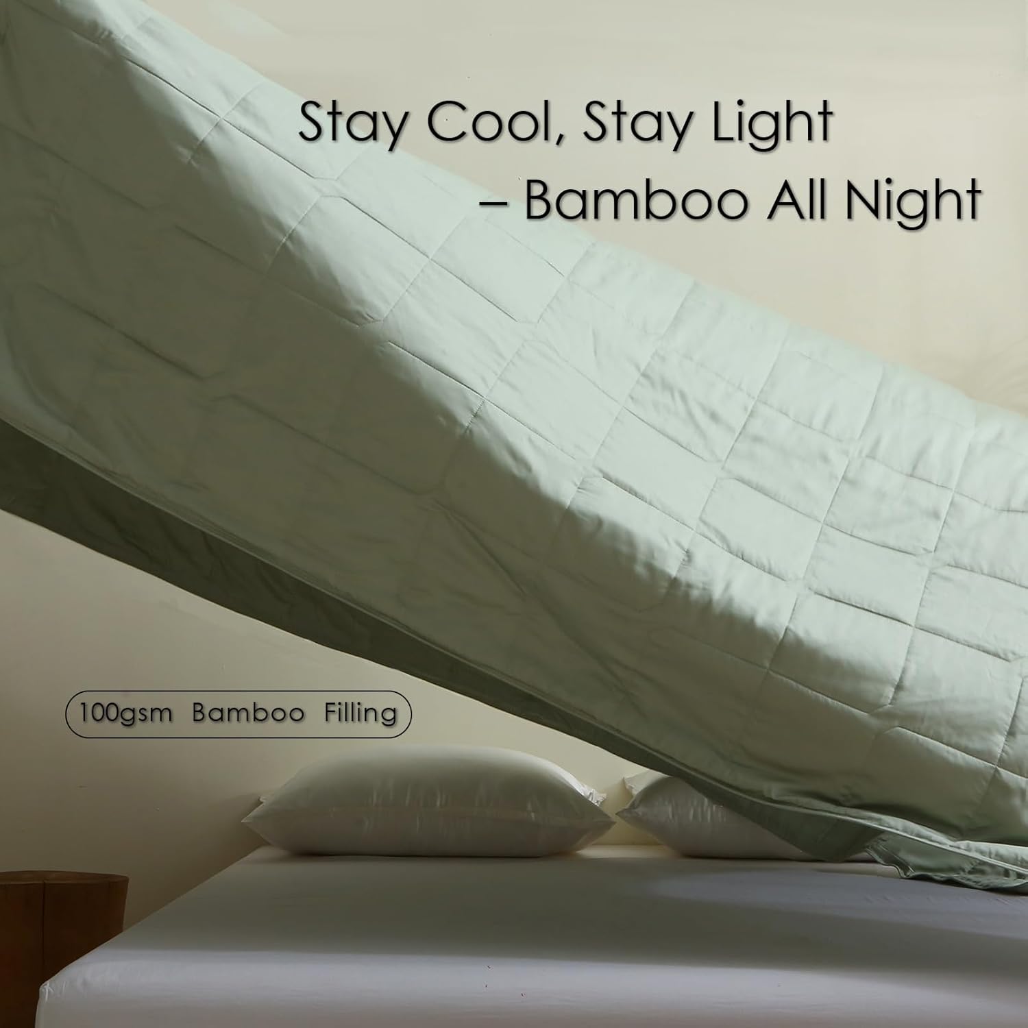 - Stay cool this summer with our lightweight bambu quilt blanket – Crafted from 100% viscose derived from bambu for the outer fabric and inner filling, delivering natural thermo-regulating comfort.