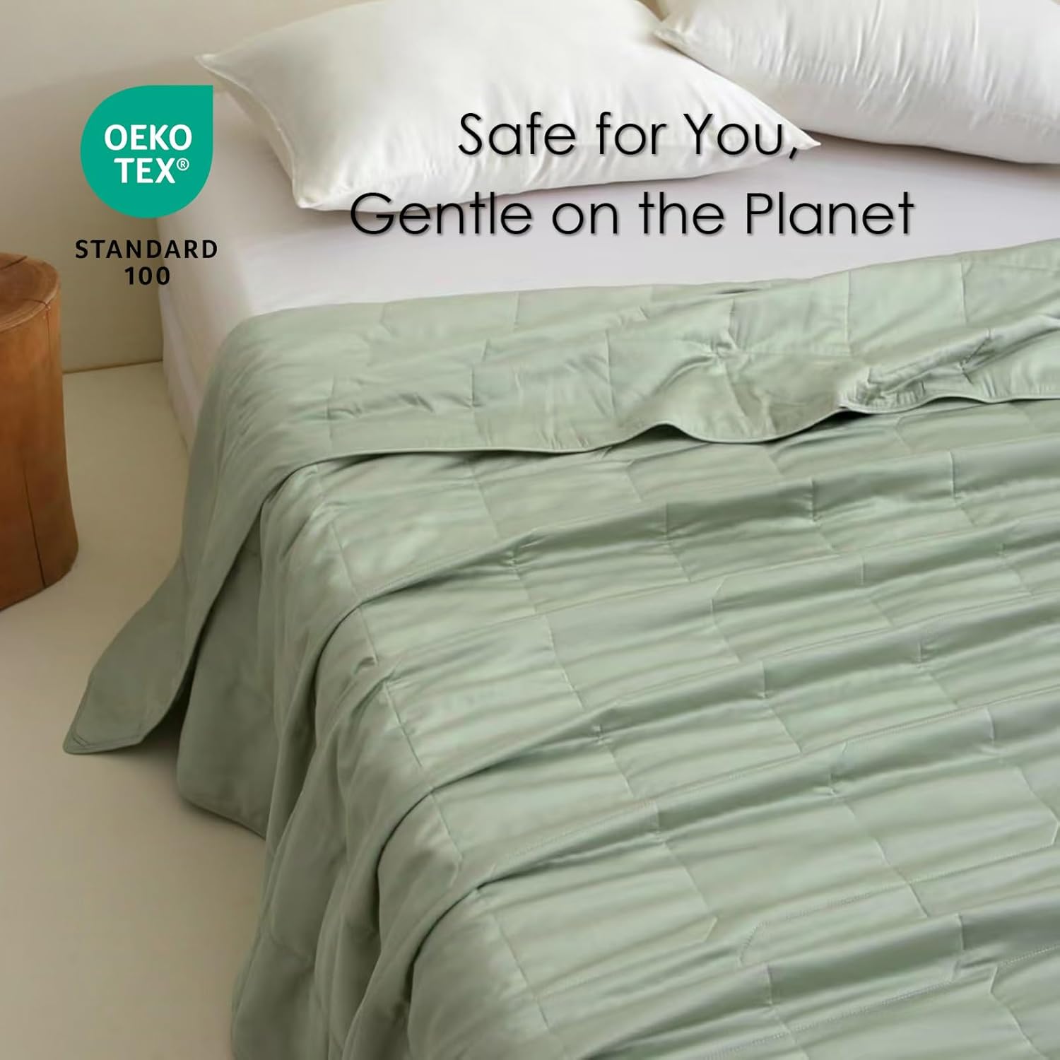 - Perfect for sensitive skin and hot sleepers, this lightweight quilt blanket offers a silky-smooth texture with a subtle cooling sensation and exceptional breathability, all sourced from nature's finest fibers.