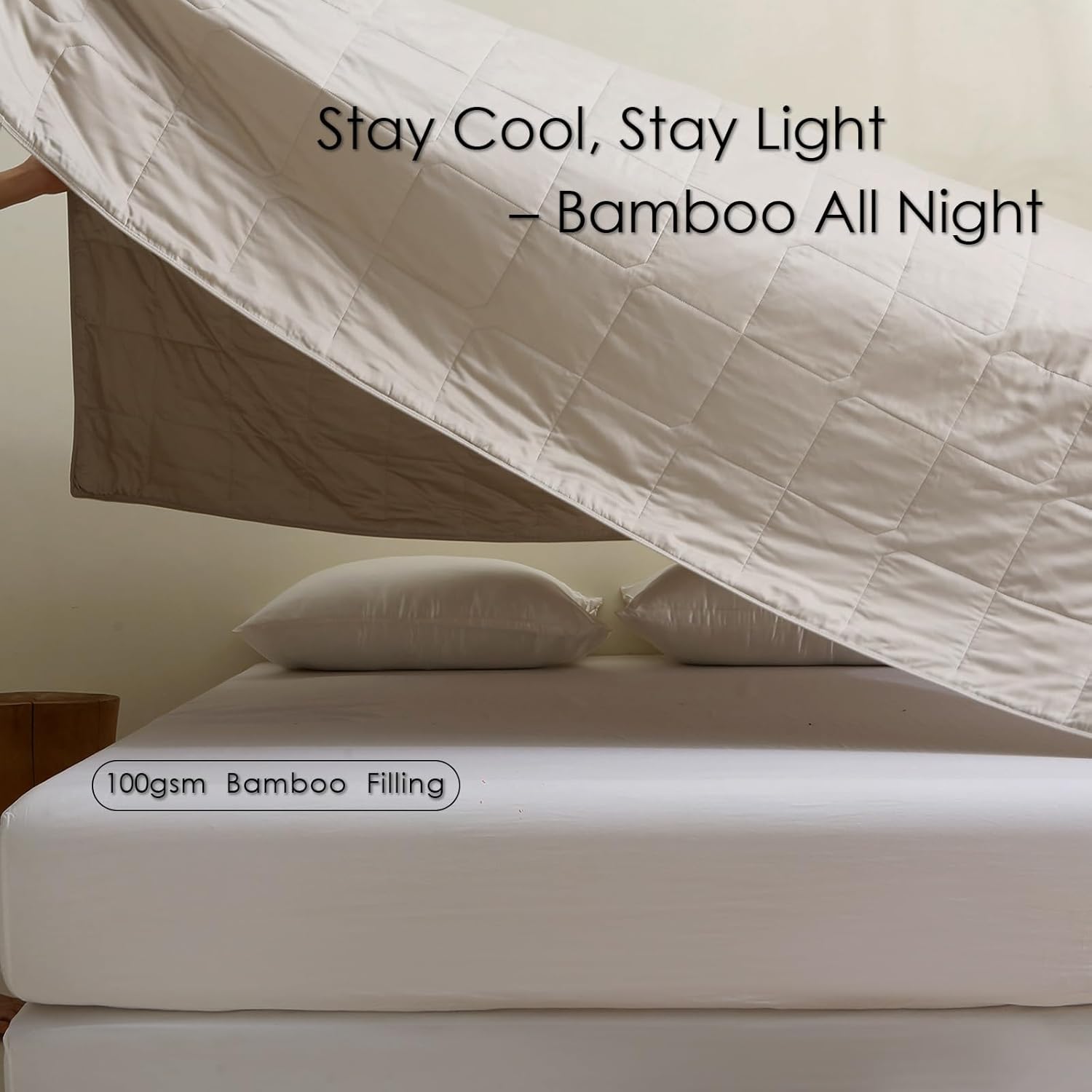 - Stay cool this summer with our lightweight bambu quilt blanket – Crafted from 100% viscose derived from bambu for the outer fabric and inner filling, delivering natural thermo-regulating comfort.