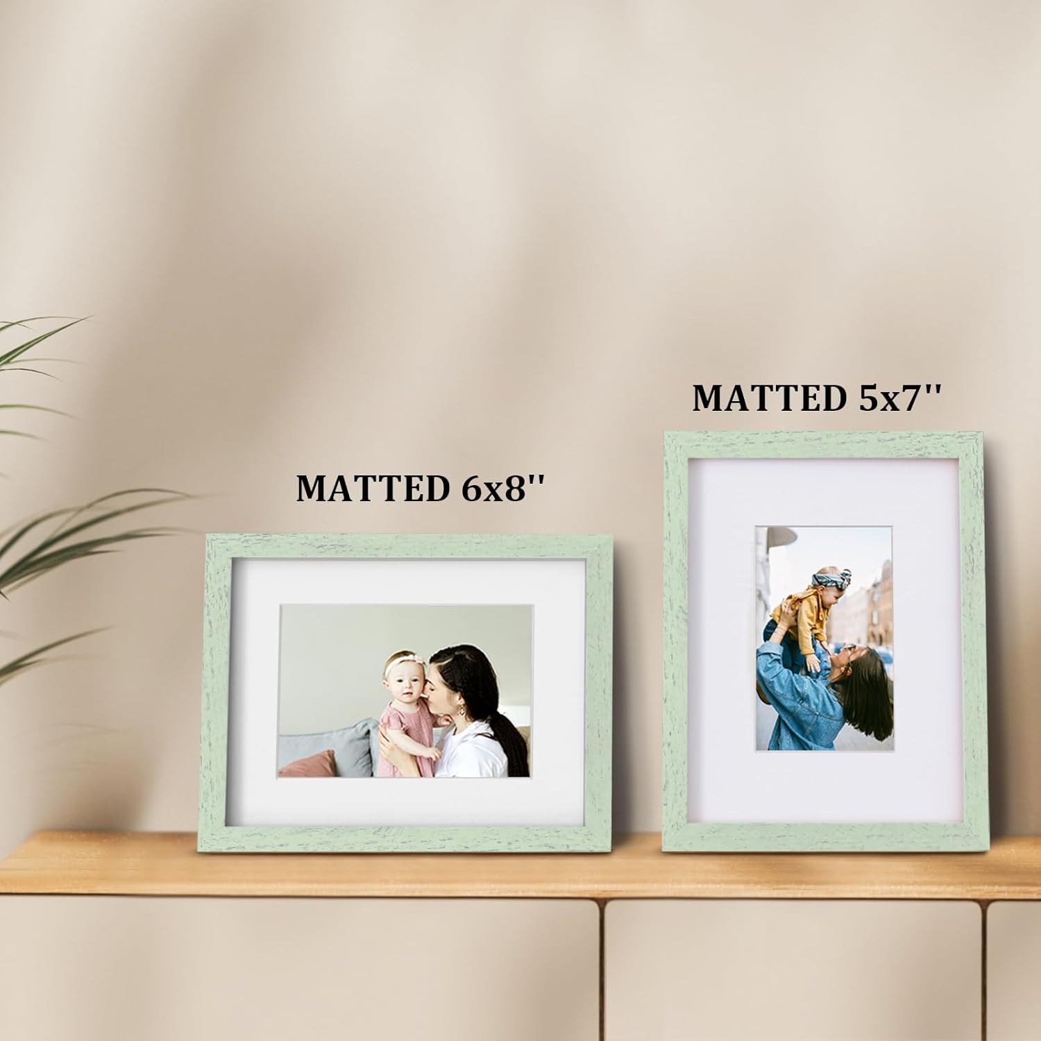 Egofine 9x12 Picture Frames Set of 4, Made of Solid Wood Covered by Plexiglass 5x7 and 6x8 with Mat or 9x12 without Mat, for Table Top Display and Wall Mounting Photo Frame Rustic Green