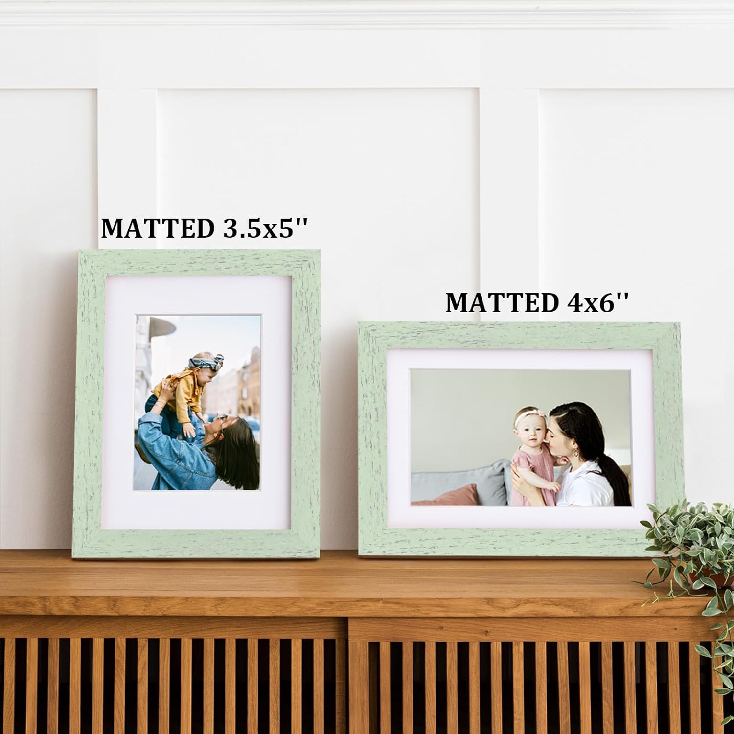 Egofine 5x7 Picture Frames Set of 4, Made of Solid Wood Covered by Plexiglass 3.5x5 and 4x6 with Mat or 5x7 without Mat, for Table Top Display and Wall Mounting Photo Frame Rustic Green