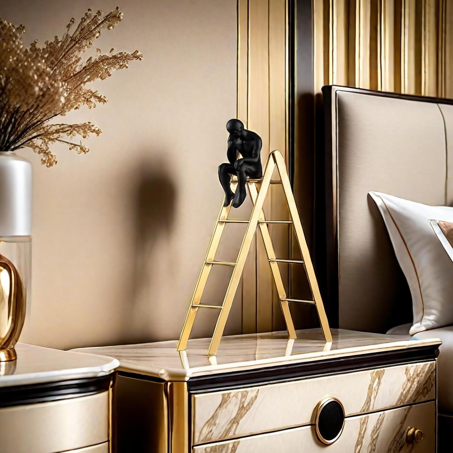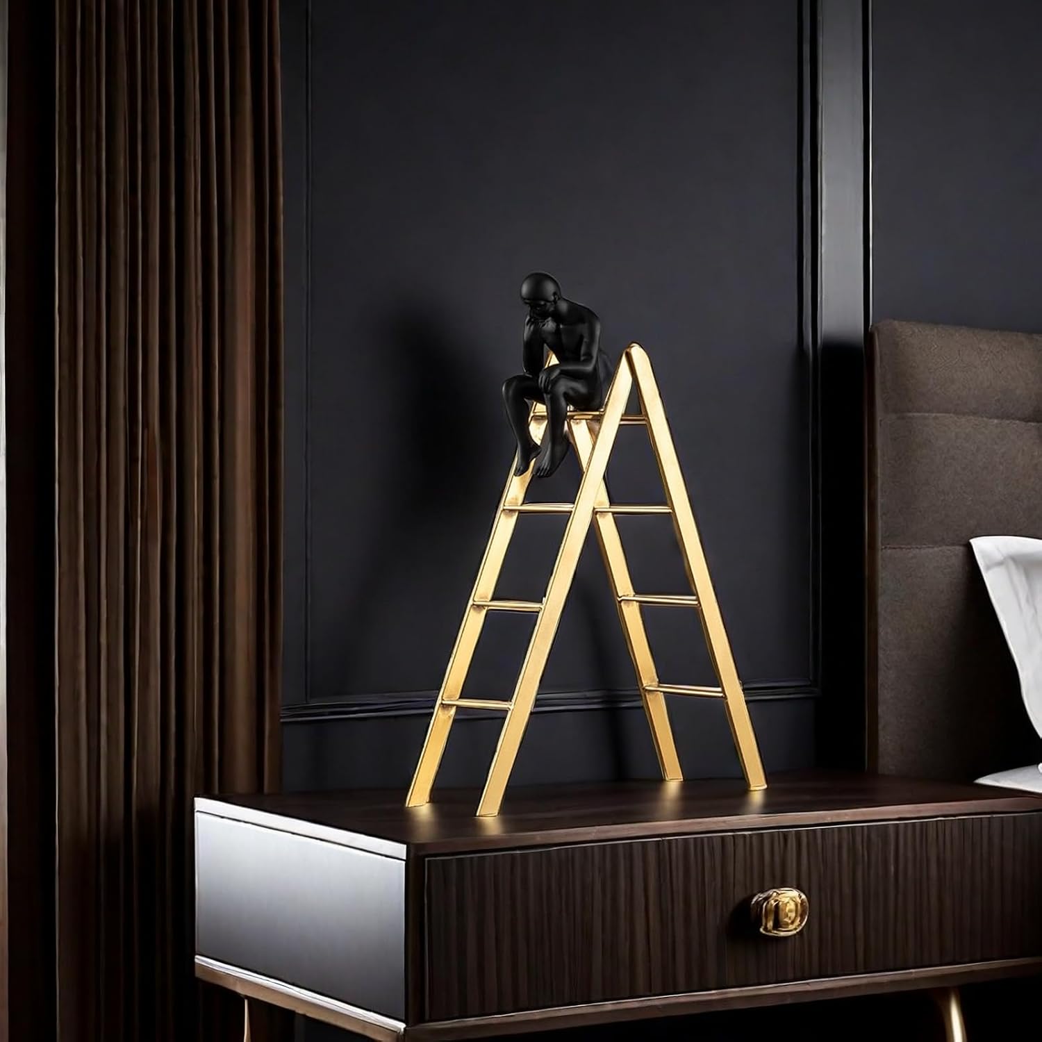 FUNSXBUG The Thinker Statue Thinking Man Statues Sitting on a Ladder Sculptures Collectible Figurine Home Decor Living Room Decoration (Large)