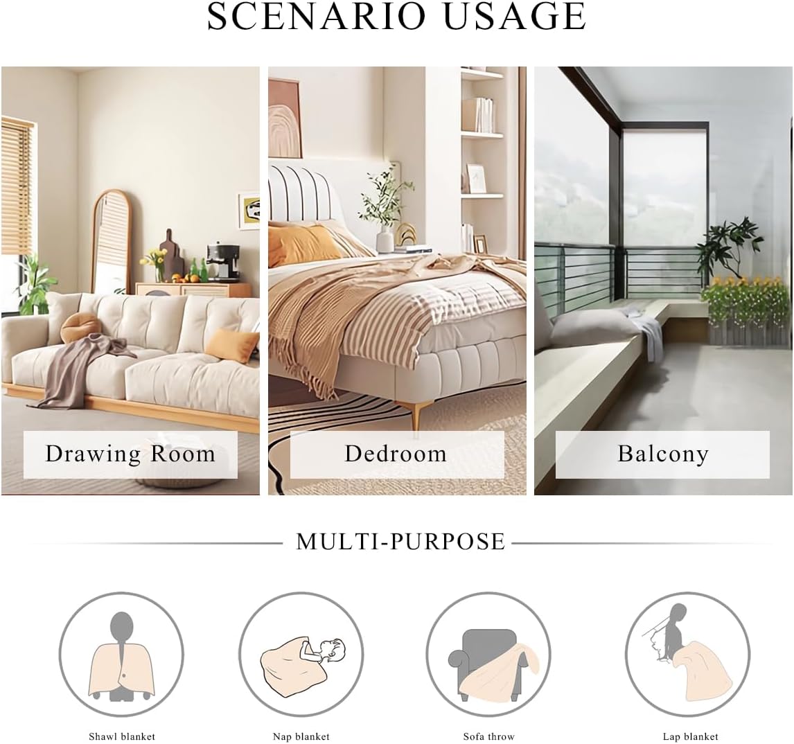 - SELECTED FABRIC: The blanket is made of high quality acrylic material for a cashmere texture. The imitation cashmere blanket is soft and skin-friendly, breathable and cozy without being stuffy. The dense weave brings a vivid jacquard texture, lightweight and warm without being heavy. The fabric drapes smoothly for a beautiful and natural look. Double reinforced sewn edges, neat and firm finish ensures that it is not easy to unravel.