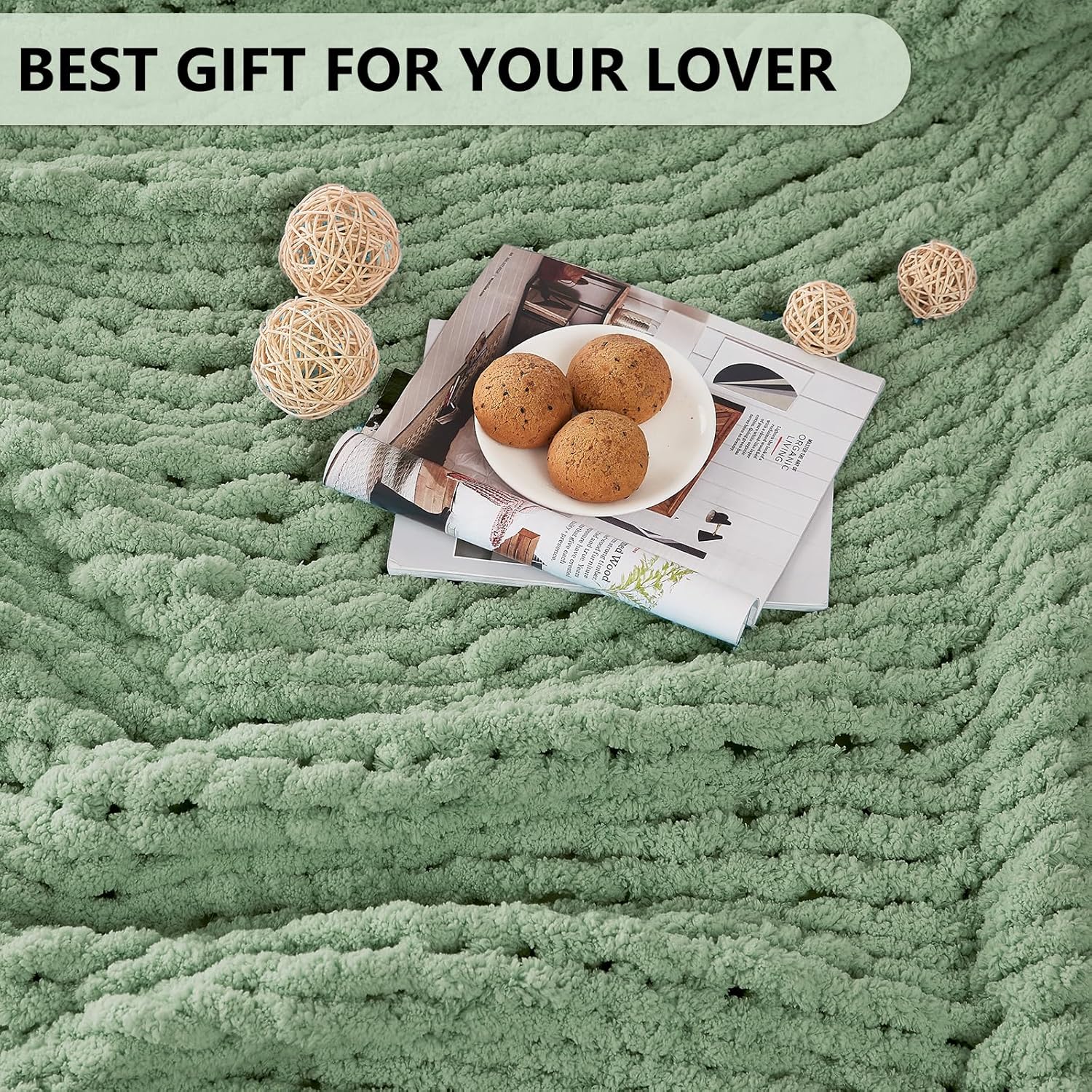 L'AGRATY Chunky Knit Blanket Throw: 72''x84'' Chenille Chunky Knitted Throw Blanket for Bed Couch - Handmade Thick Big Cable Knit Blanket - Large Chunky Crochet Blanket for Home Decor(Sage Green)