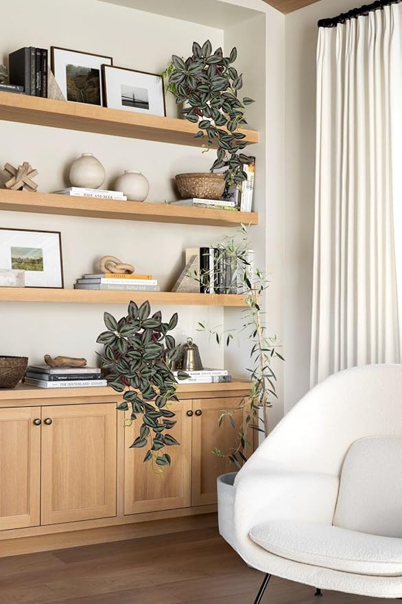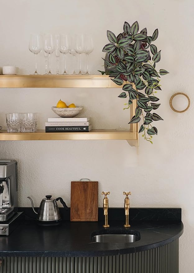 - 🌱Lifelike & Vibrant - Each order includes 2 pcs Wandering Jew fake hanging plants. The plants lengths are 26". They boast a lifelike appearance with vibrant colors and realistic details, adding a touch of greenery to your small space year-round.