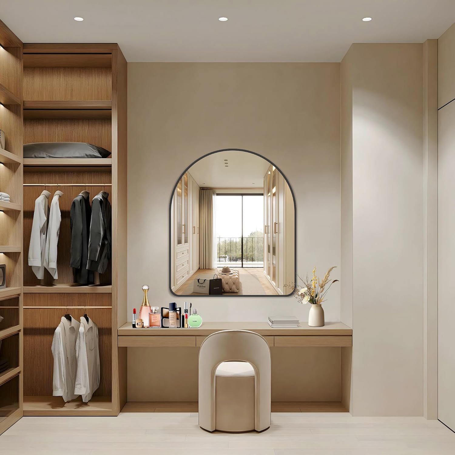- Aluminum Alloy Frame: Our arch bathroom mirror is made of high quality aluminum alloy frame, sturdy and rust-proof. Special anti-corrosion mirror treatment, designed for long time use. And the high-grade aluminum alloy frame also has an anti-corrosive feature. The wall-mounted mirror for the bathroom performs beautifully in every climate.