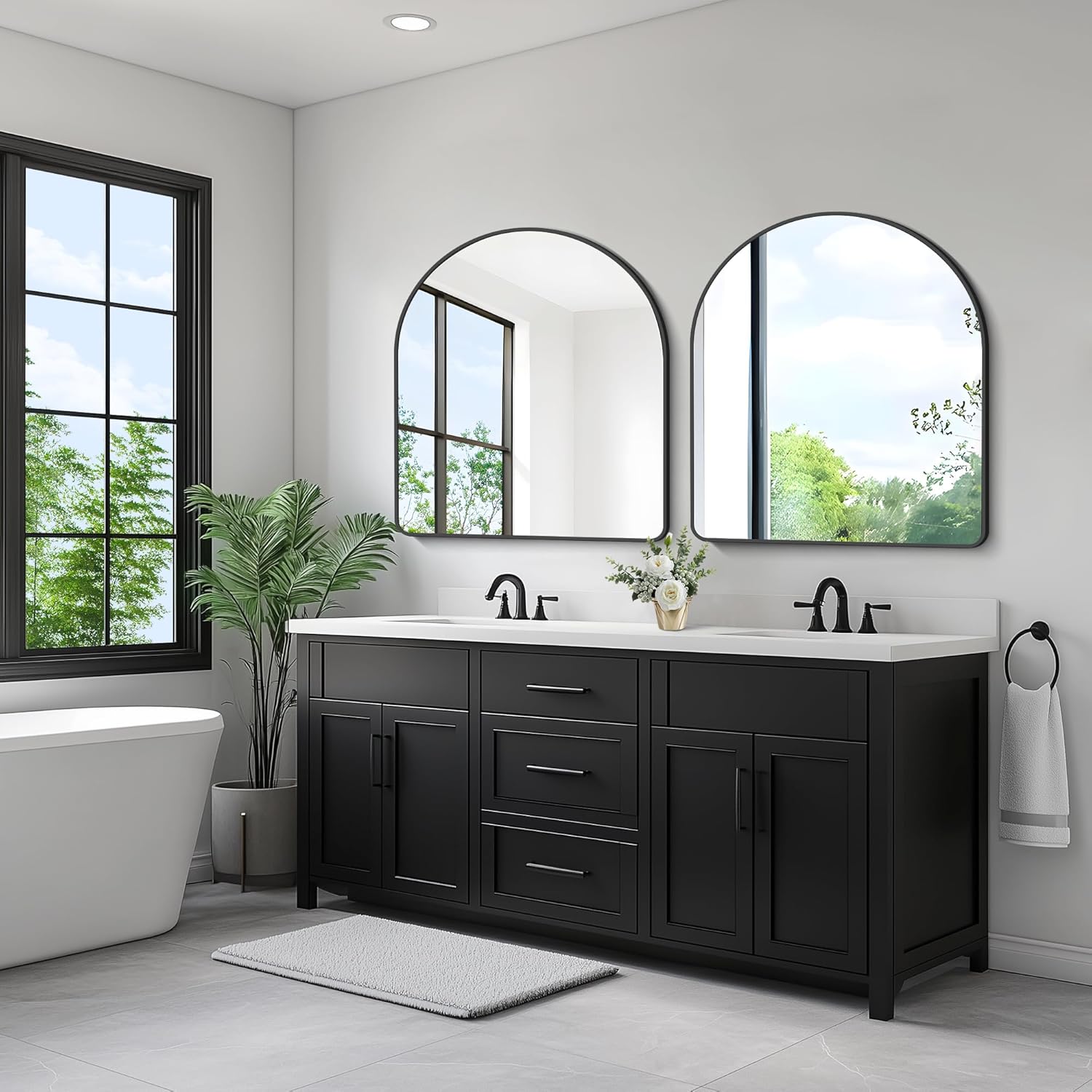 FORBATH Arched Mirror 36x40 Inch, Black Arched Mirror Wall Mounted Modern Black Aluminum Frame Decor Large for Dresser Bedroom Living Room Entryway, Hanging or Leaning Against Wall