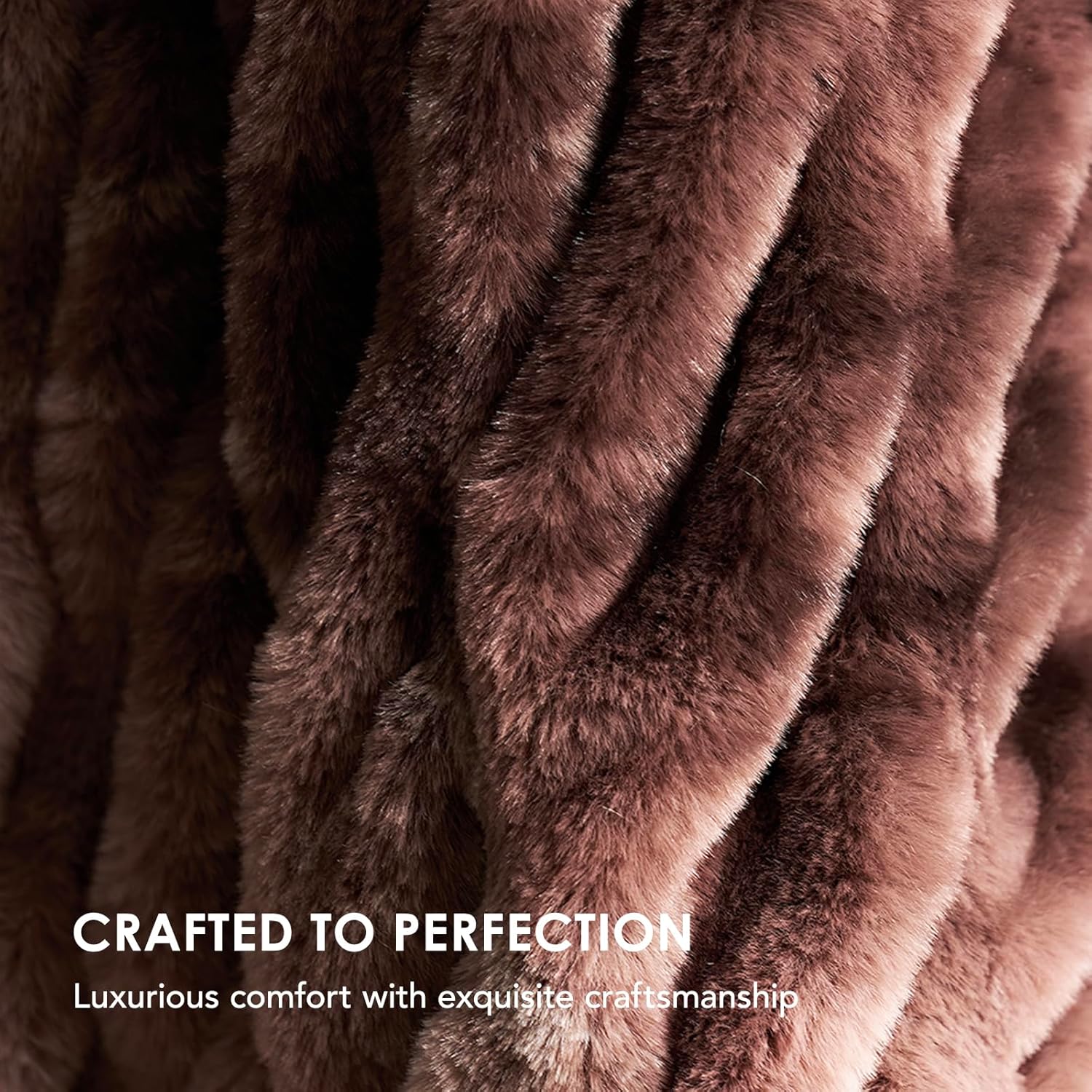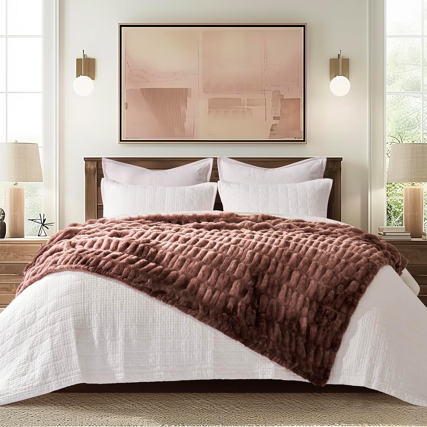 EVERGRACE Luxurious Soft Faux Rabbit Fur Throw Blanket, Cozy Fuzzy Plush Warm Throws for Couch Bed Sofa Chair Home Decor, Ruched Bubble Fluffy Blanket with Reversible Velvet, 50" x 60", Mocha Brown