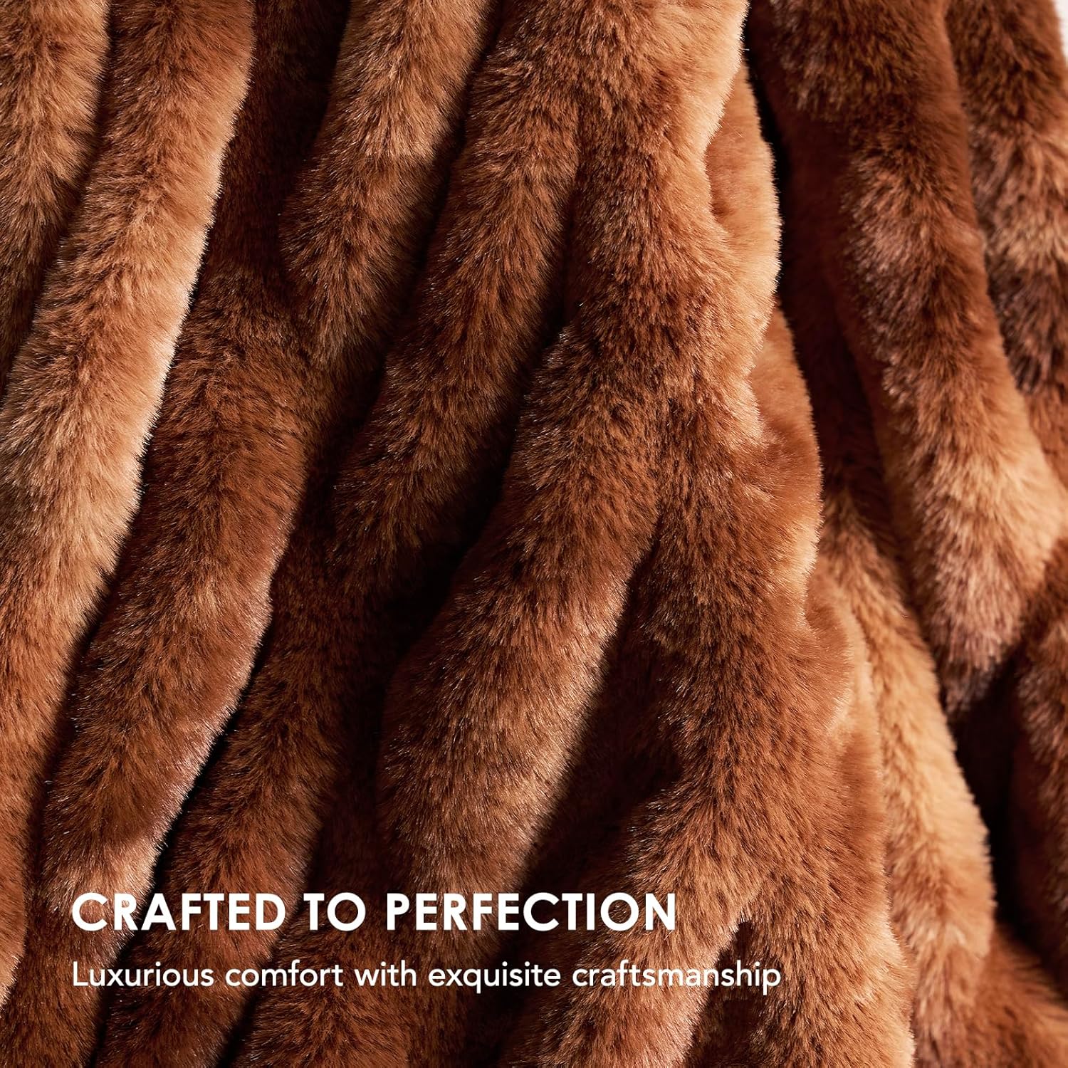 EVERGRACE Luxurious Soft Faux Rabbit Fur Throw Blanket, Cozy Fuzzy Plush Warm Throws for Couch Bed Sofa Chair Home Decor, Ruched Bubble Fluffy Blanket with Reversible Velvet, 50" x 60", Clay