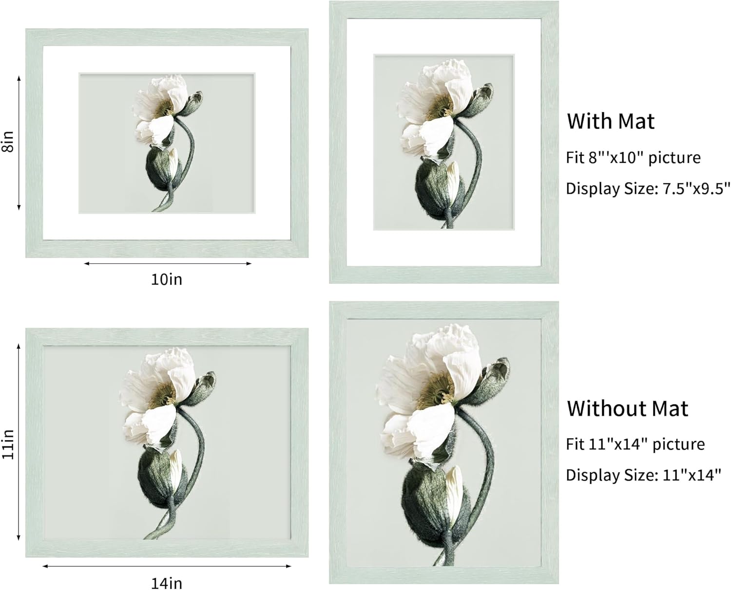 iRahmen 11x14 Picture Frame Set of 2, HD Plexglass Poster Frames Display Picture 8x10 with Mat or 11 x 14 without Mat, Rustic Photo Frame for Wall Mounting Horizontal Vertical