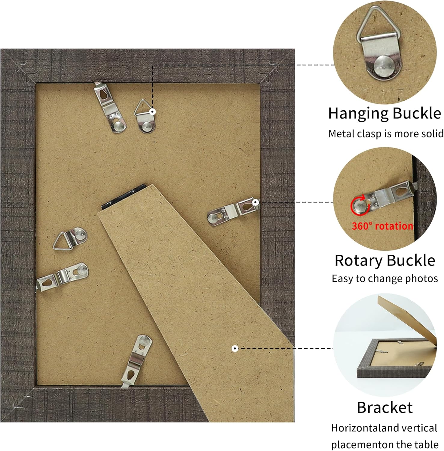 - COMPOSITE WOOD PHOTO FRAME: This picture frames set made of MDF, The HD glass cover can clearly display your cherished photos(No worrying about injury for broken glass), protecting your photos from dust, moisture and scratches.