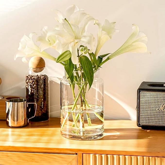 - 【Modern Glass Flower Vase】- This clear vase features a simple and stylish cylinder design, while the mouth of the vase is reduced to a certain size to achieve a more beautiful flower arrangement and is very easy to clean. This wide mouth glass vase is suitable for roses, lilies, tulips, peonies, sunflowers and more. This elegant and stylish large vase is suitable for modern farmhouse, minimalist, bohemian and classic style houses.