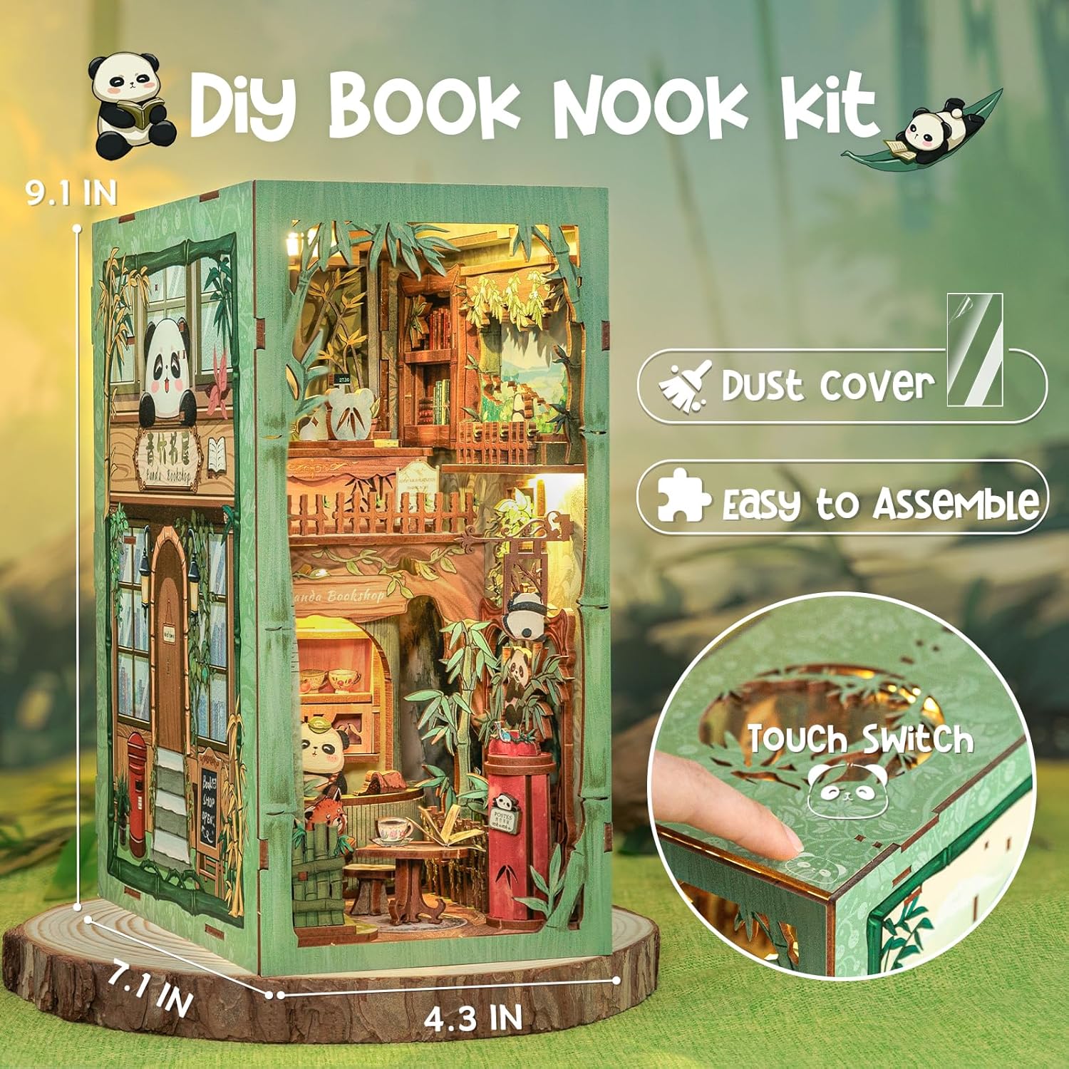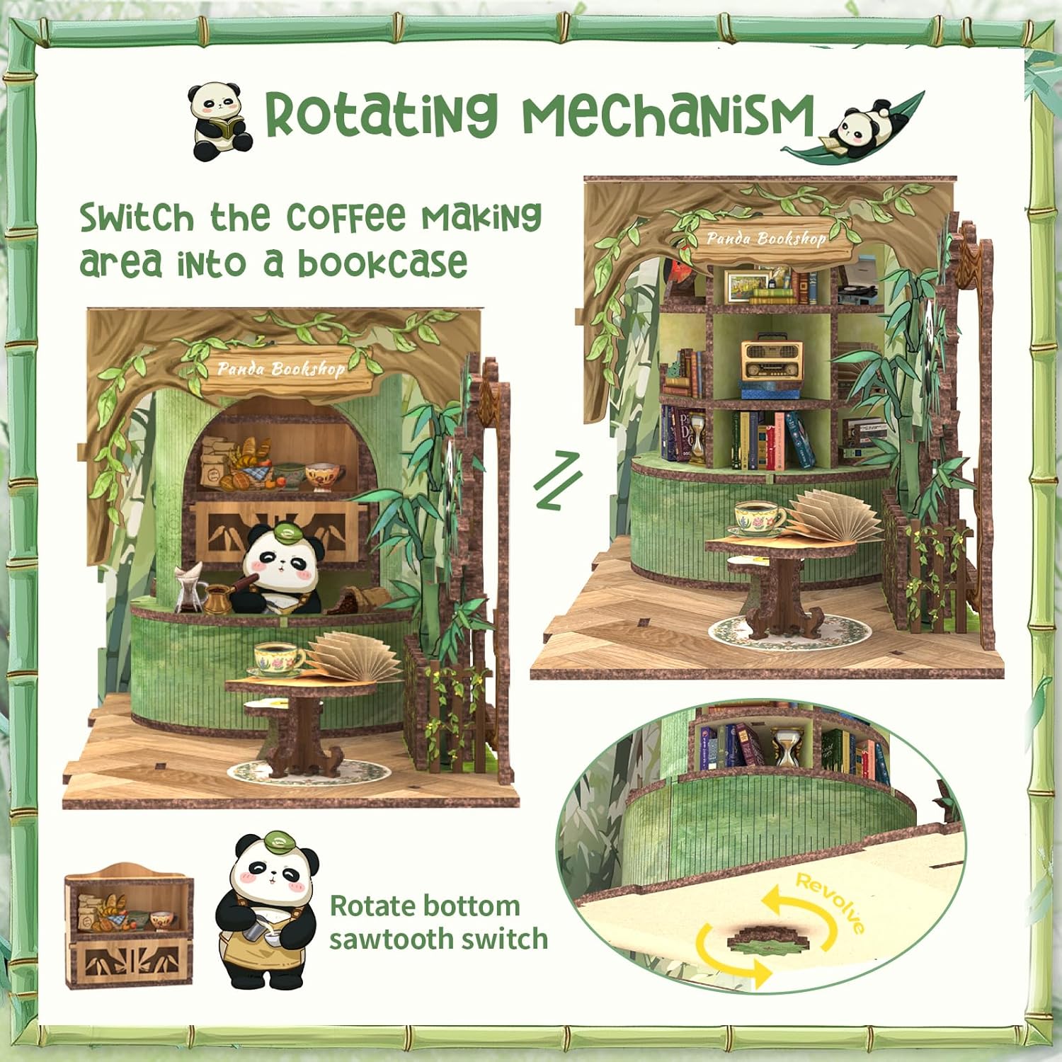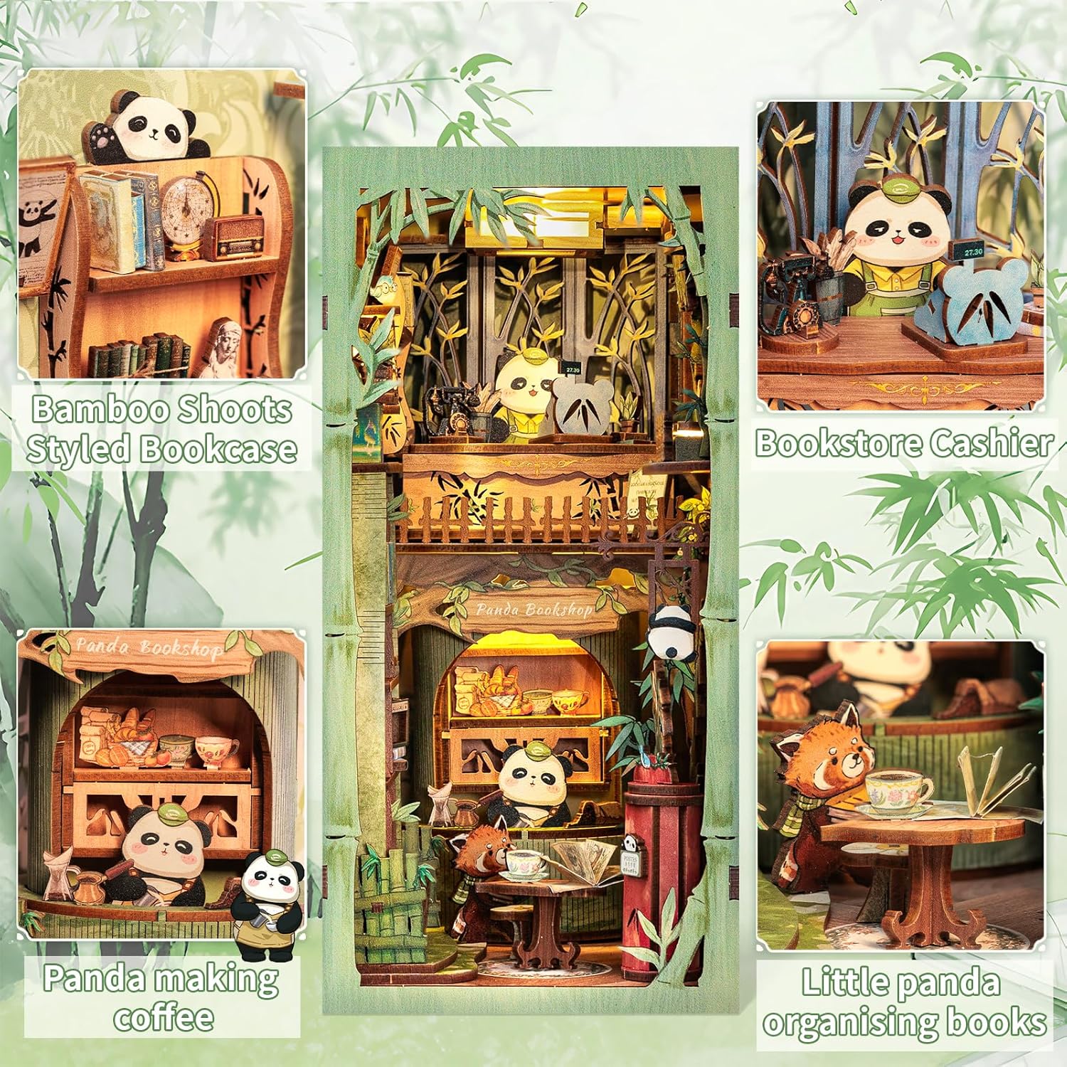 - BOOK NOOK KIT - PANDA BOOKSHOP - This is a vibrant reading space full of vintage charm. Pandas are living here, each one enjoying themselves and doing what they like. Shelves and wall decorations reflect the beauty of bamboo everywhere. There is also a coffee-making area, allowing people to savor coffee while feeling the blend of nature and culture. Panda Bookshop is an enjoyable place to read and relax, providing readers with a comfortable and pleasant experience.