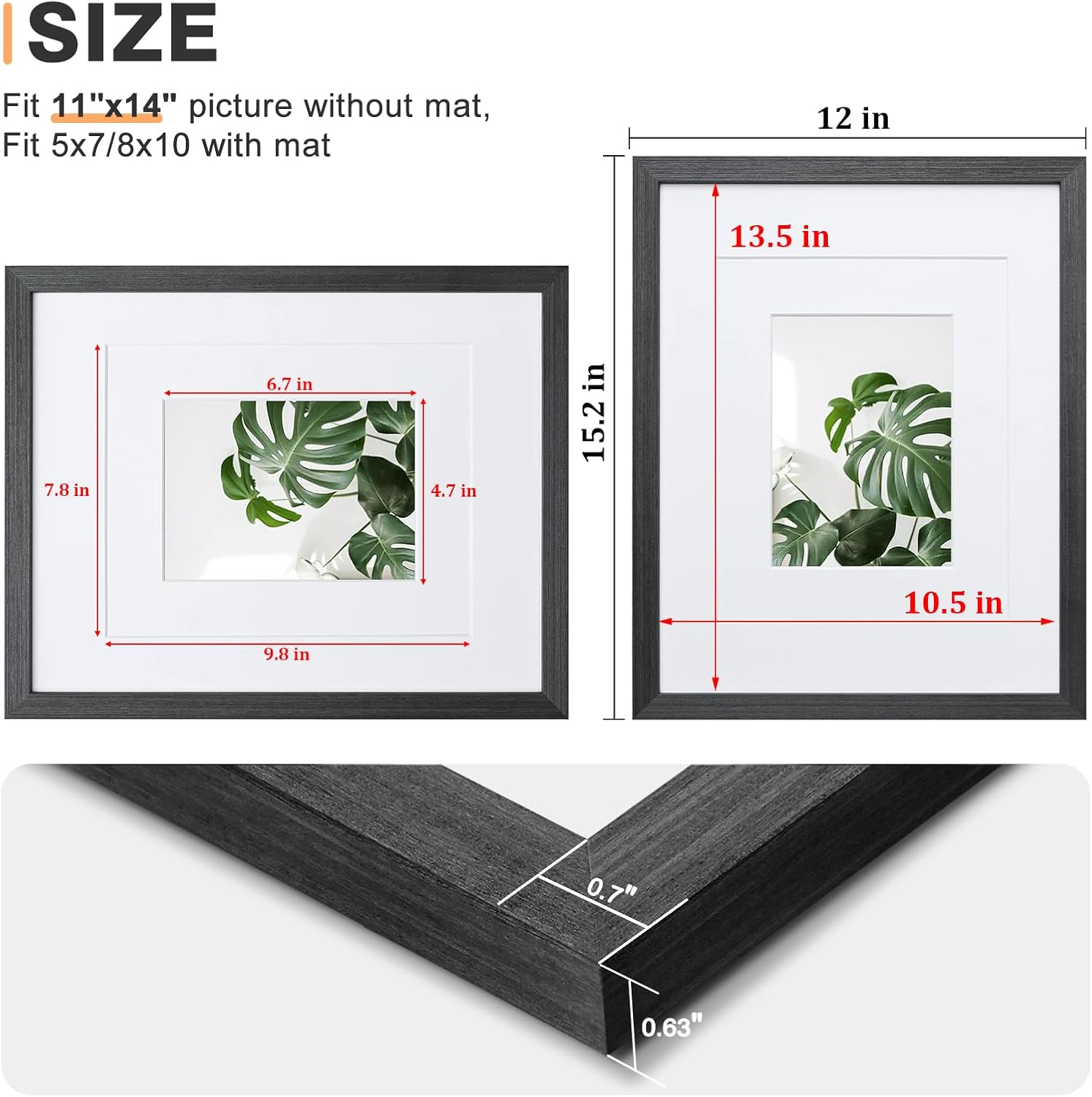 - 【Dimension】: Overall dimension is 12x15 inch, back opening size is 11x14 inch, opening size is 10.5x13.5 inch. Mat opening size is 4.8x6.8 inch for 5x7 photos and 7.8x9.8 inch for 8x10 photos. Perfect for dress up any room in your home or office, Great gift for festival, Father's Day, Mother's day and best friend birthday.