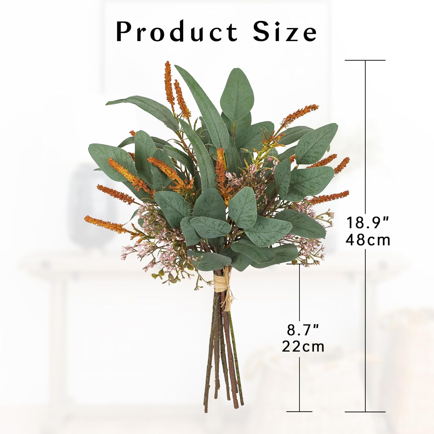 - SEASONAL SIZE FOR FLEXIBLE FALL DECORATING: Standing at 18.9" (48 cm) tall and 9.1" (23 cm) wide, this lush eucalyptus bunch adds volume and color to your fall floral centerpieces, mantel displays, or kitchen counter vases. A great choice for autumn weddings and DIY crafts