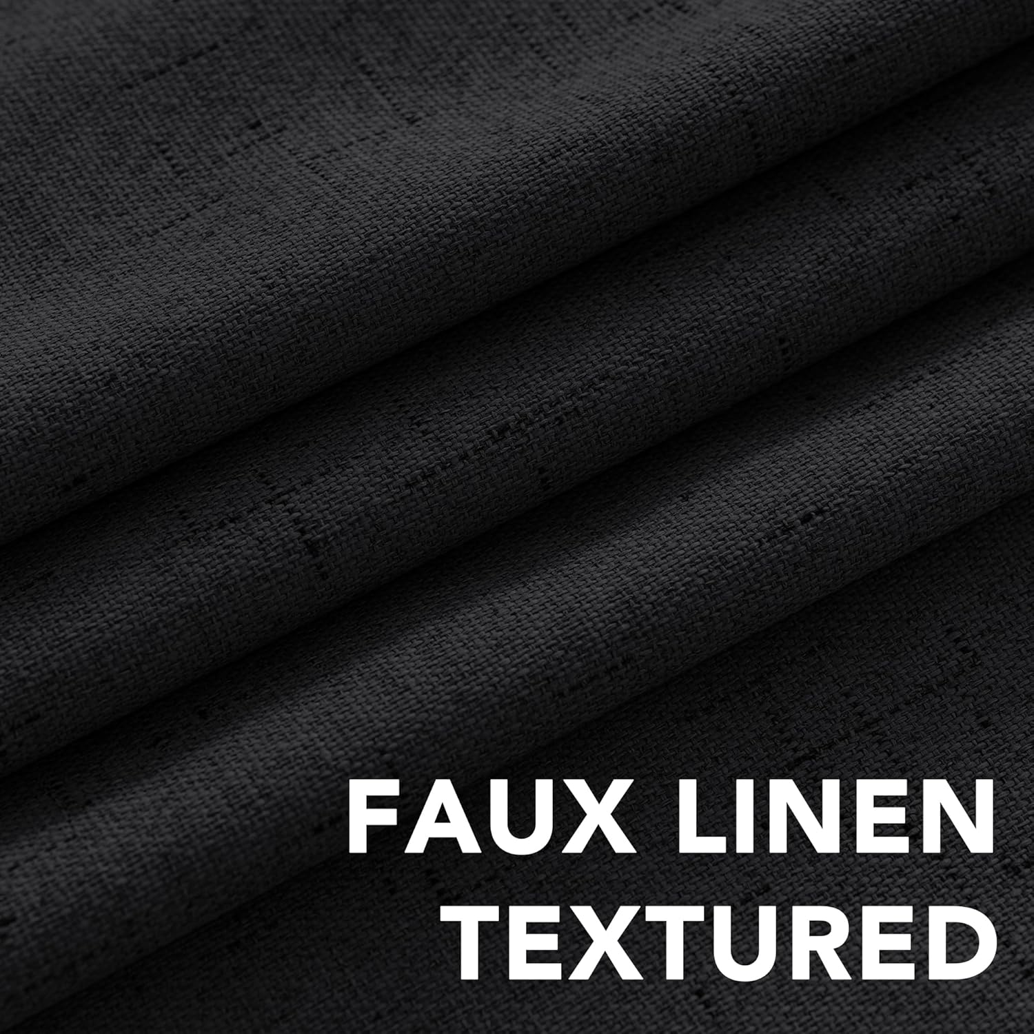 H.VERSAILTEX 100% Blackout Curtains for Bedroom Thermal Insulated Linen Textured Curtains Heat and Full Light Blocking Drapes Living Room Curtains 2 Panel Sets, Black, 52x45 Inch