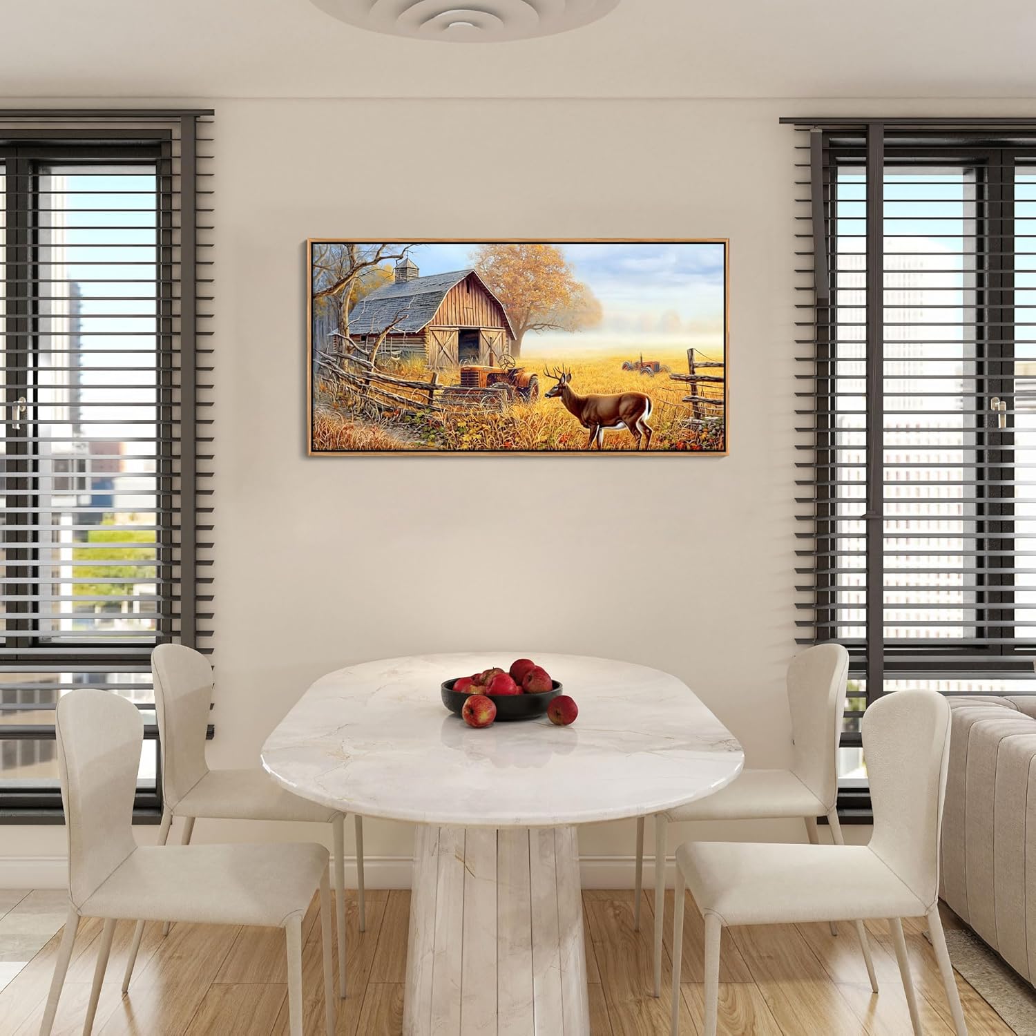- Lovely deer: The deer in the framed canvas wall art add life to the picture, symbolizing the wildlife of the countryside.