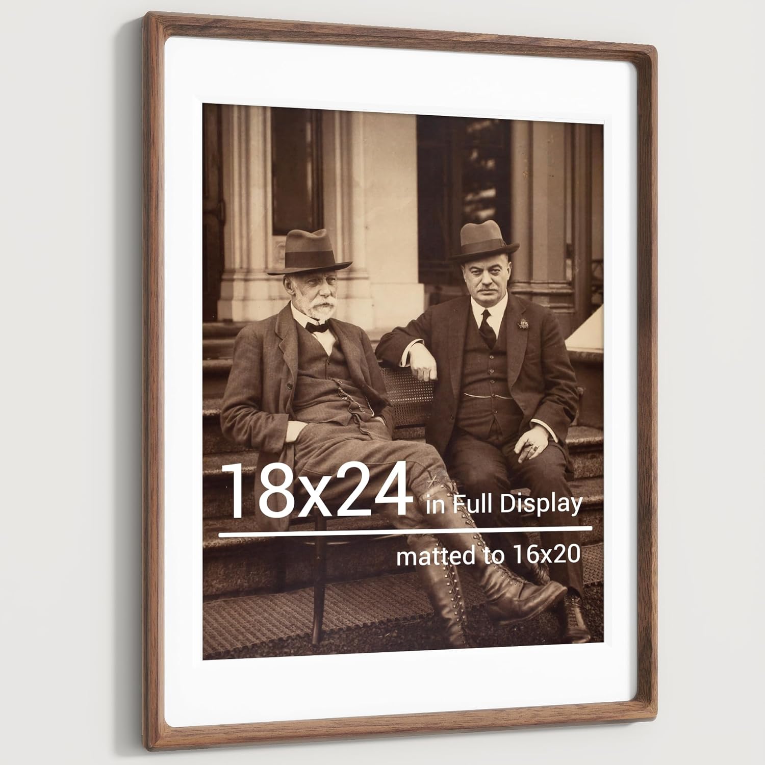 Heimlove 18x24 Picture Frames Natural Walnut,Original Wood Hand Make Crafted Poster Frame with Mat to 16x20 Graduation Picture Display,Family Picture,Wedding Picture,Photo,Document Wall Mounted