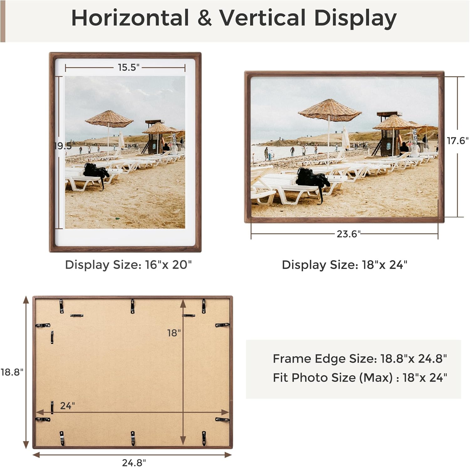 - Full View & Mat Display: Best choice to full view display 18x24 picture or 16x20 with mat by this 18x24 poster frame black walnut