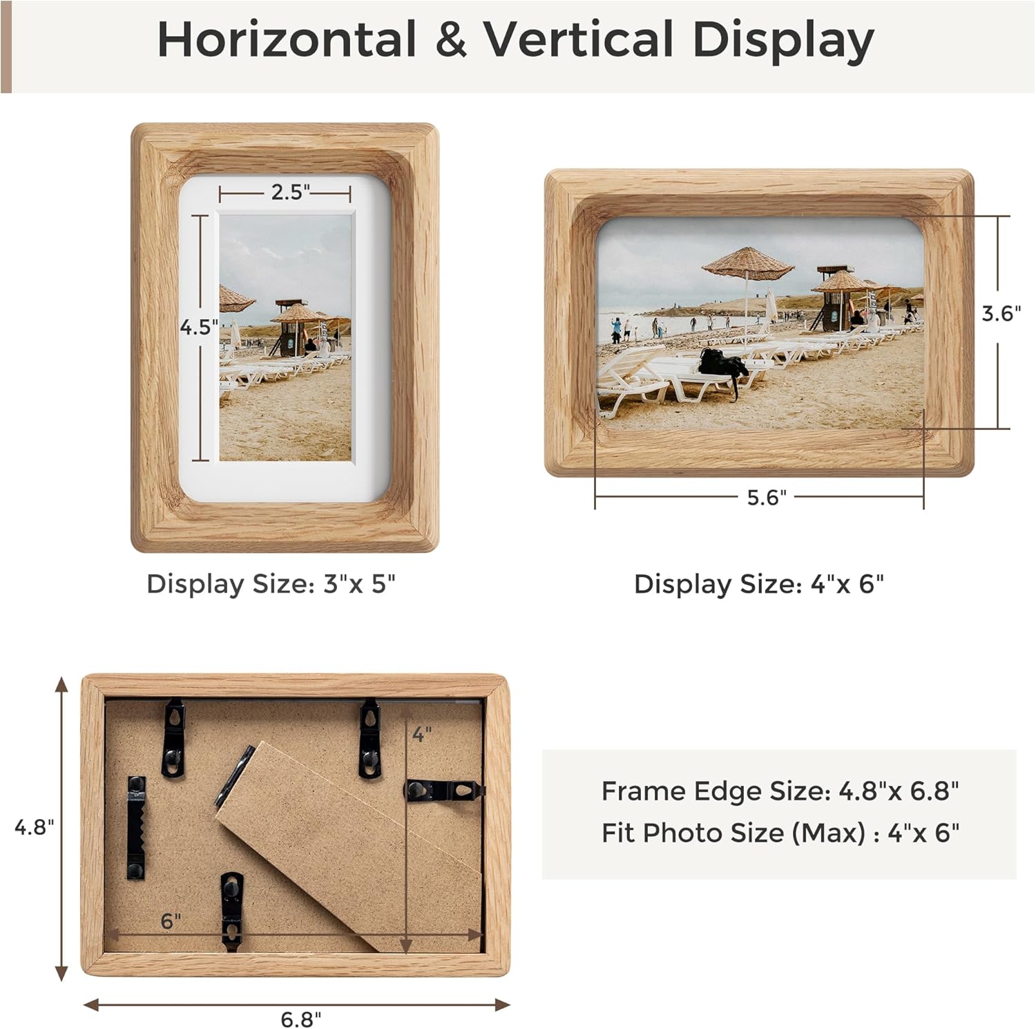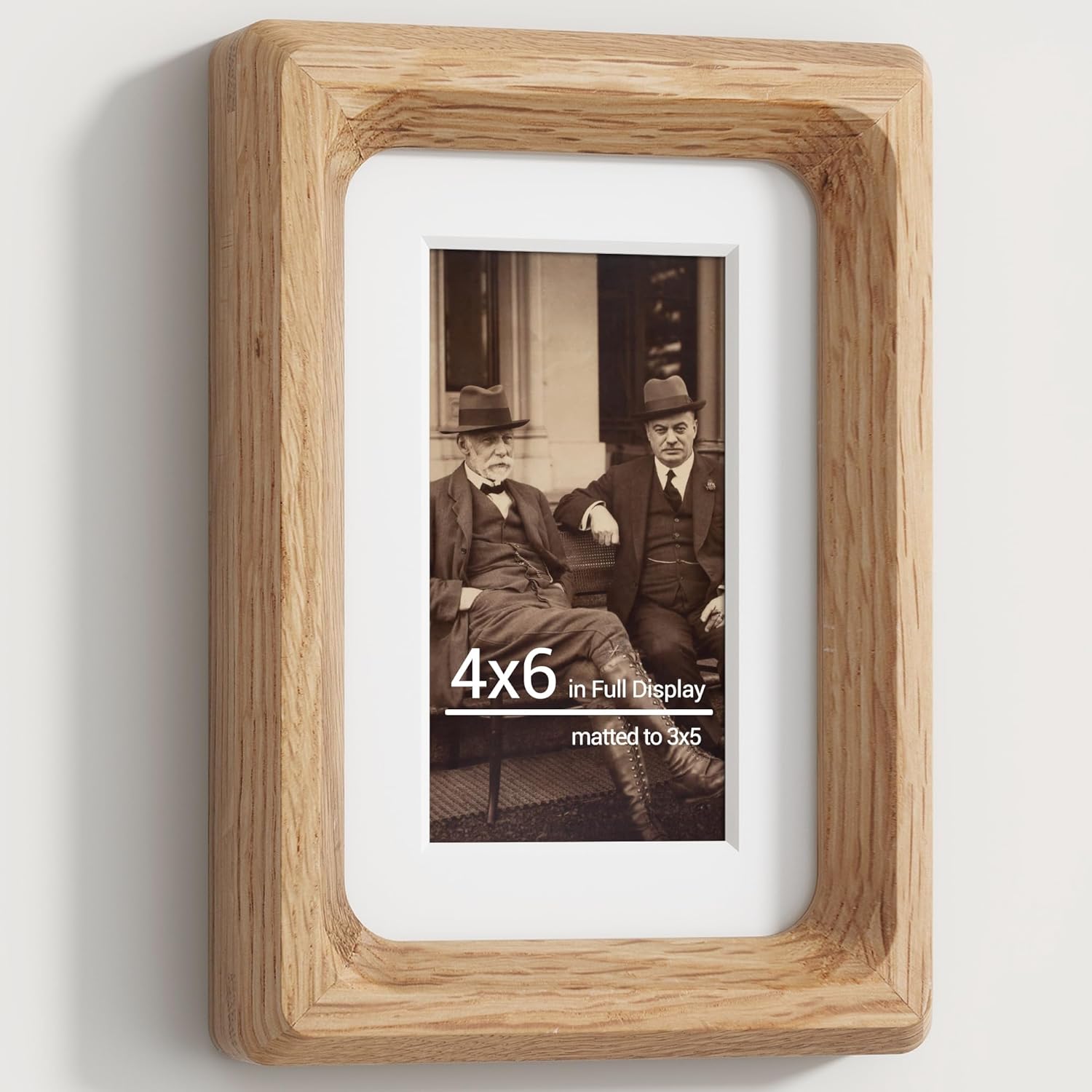 Heimlove 4x6 Picture Frames Natural Oak,Original Wood Hand Make Crafted Photo Frame with Mat to 3.5x5 Graduation Picture Display,Family Picture,Wedding Picture Tabletop & Wall Decoration