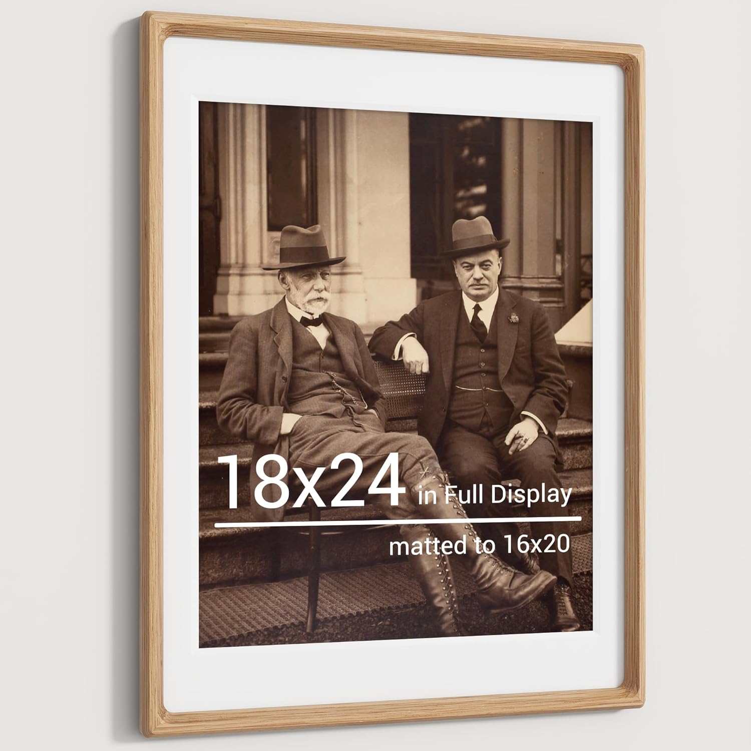 Heimlove 18x24 Picture Frames Natural Oak,Original Wood Hand Make Crafted Poster Frame with Mat to 16x20 Graduation Picture Display,Family Picture,Wedding Picture,Photo,Document Wall Mounted