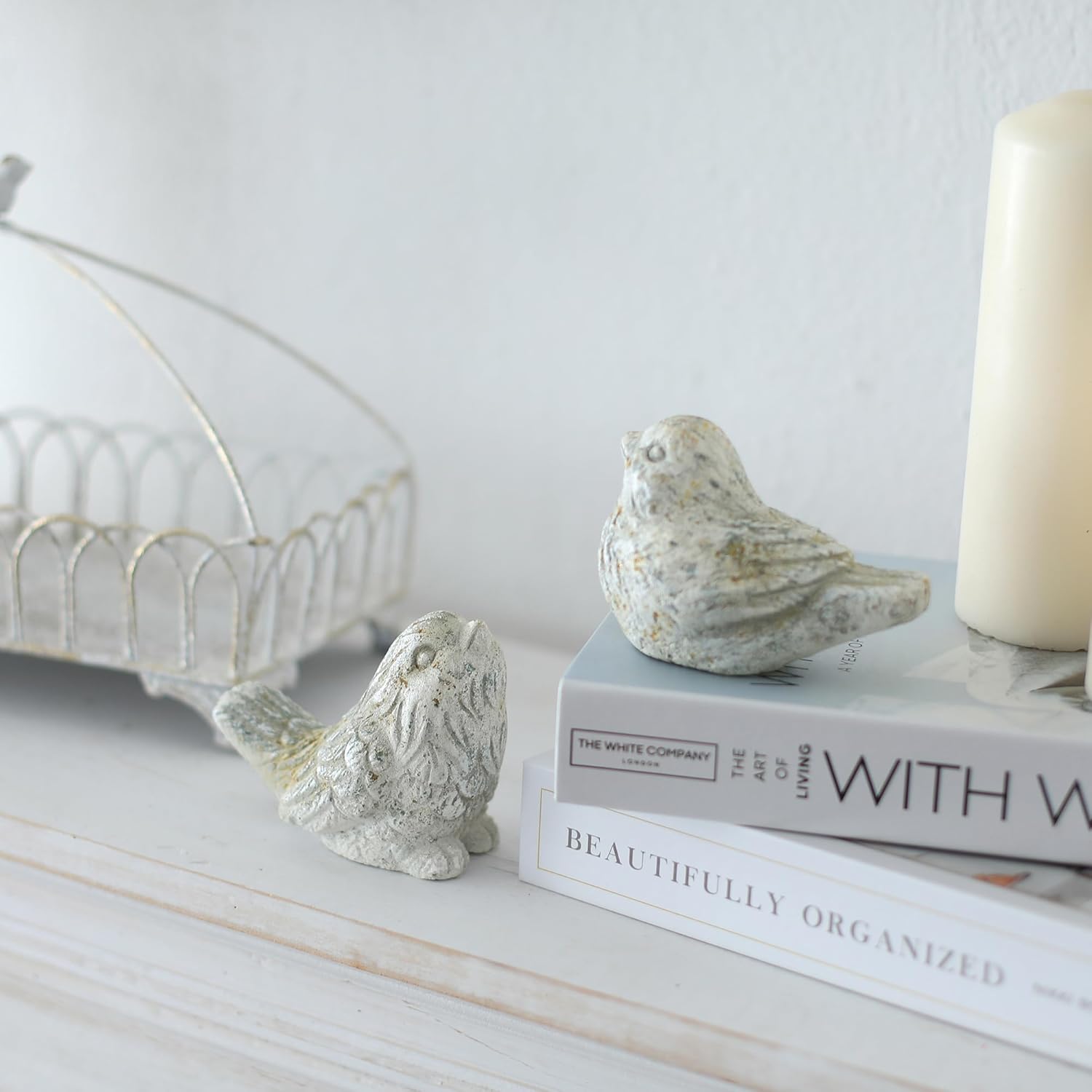 BIG FORTUNE Outdoor Bird Statues Bird Decor Figurines for Home Cement Bird Sculpture for Patio Yard Lawn Ornament, 2style/Set,Indoor Outdoor Bird Decorations Statue(Gray)