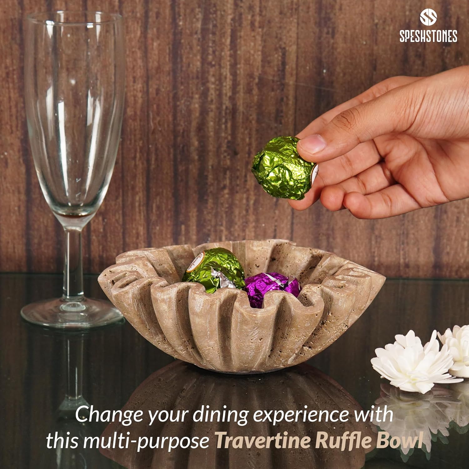 - WHAT IS INCLUDED - 1 x Travertine Ruffle Bowl. Comes along with SPESHSTONES branded, secure and fragile packaging.