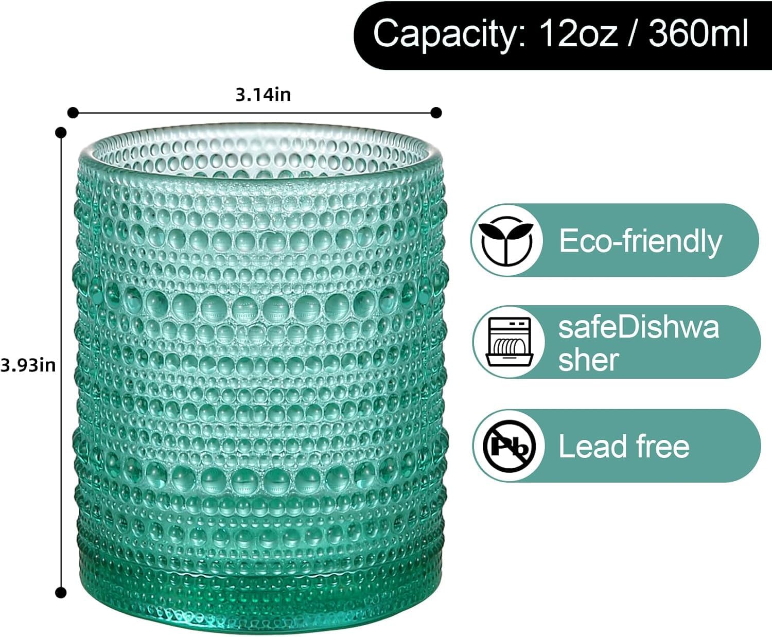 Colored Hobnail Drinking Glasses Set of 6,12oz Vintage Kitchen Glassware,Embossed Beaded Glass Cups,Water Tumbler for Cocktail,Juice and Various Mixed Drinks